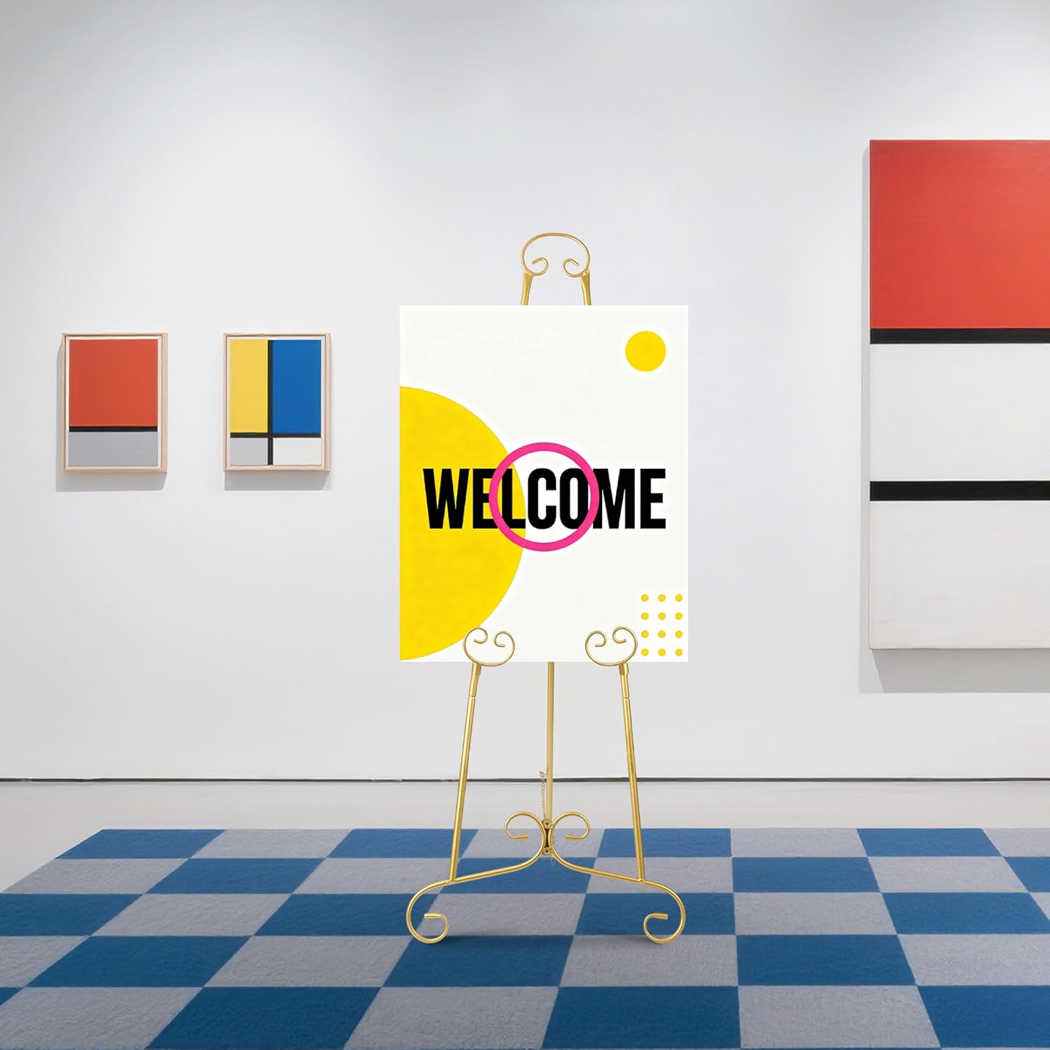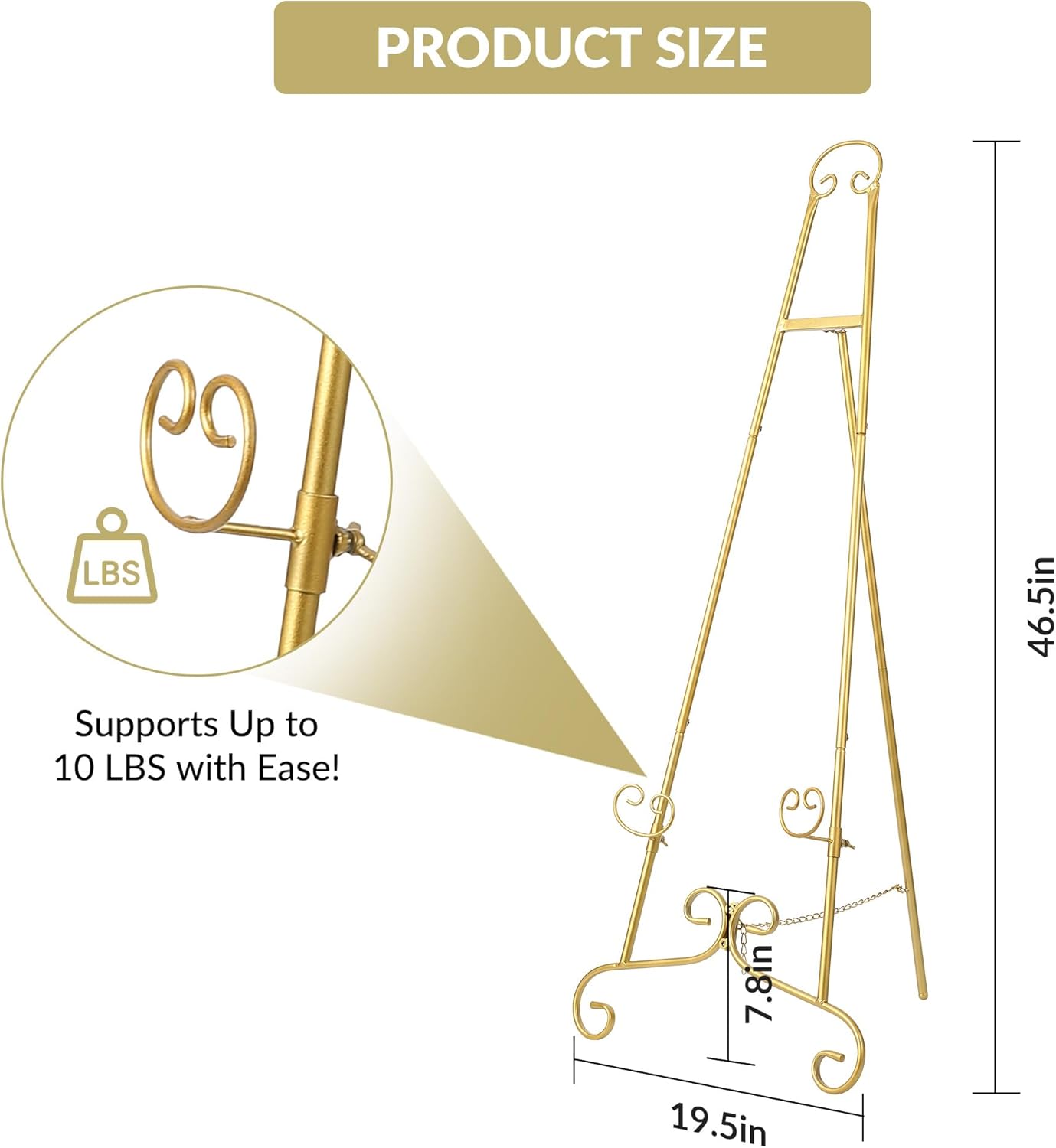 Transform any event into a statement of style—see how this gold easel stand showcases your welcome signs, pictures, or posters with elegance and sturdy support for every memorable occasion. Highlights at a Glance: - Elegant gold finish and wrought iron design complement any event or home décor - Adjustable height levels make it easy to display signs at the perfect viewing angle - Heavy duty metal frame with chain support holds up to 10 LB securely - Stable triangular structure ensures your pictures and posters stay upright - Clear instructions and labeled parts make assembly quick and straightforward Specification: Product Name: Easel Stand Product Dimensions: 19.5x7.8x46.5 in Material: Metal Color: Gold Friendly Note: Ensure the easel is fully opened and stands firmly before adding your sign or poster. Adjust the height to suit your sign or display, making sure the chain support is securely in place. For long-term use, avoid placing the easel in damp environments and clean it gently with a soft cloth. Packing List: 1 x Welcome Sign Stand Easel 1 x Hardware Pack 1 x Assembly Instruction