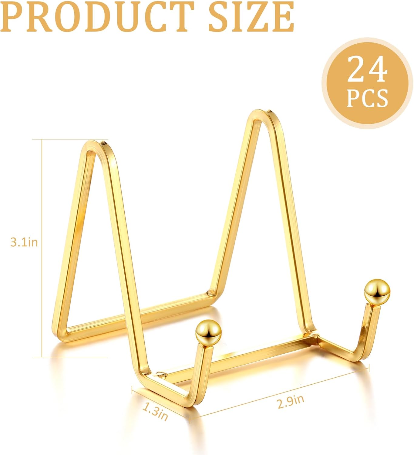 Features: Picture frame holder stand can enhance the style of artwork, easily bring a good decorative effect to you. Featuring beautiful and generous design, whether display easel stand is on the desk, shelf, coffee table, or kitchen countertop, always exudes elegance, you can share plates stand holder with your family members and friends. Specifications: Material: iron square wire material Color: gold Size: 3 inches Package includes: 24 x Plate easel display stand Notes: Manual measurement, please allow slight errors on size. The color may exist a slight difference due to different screen displays