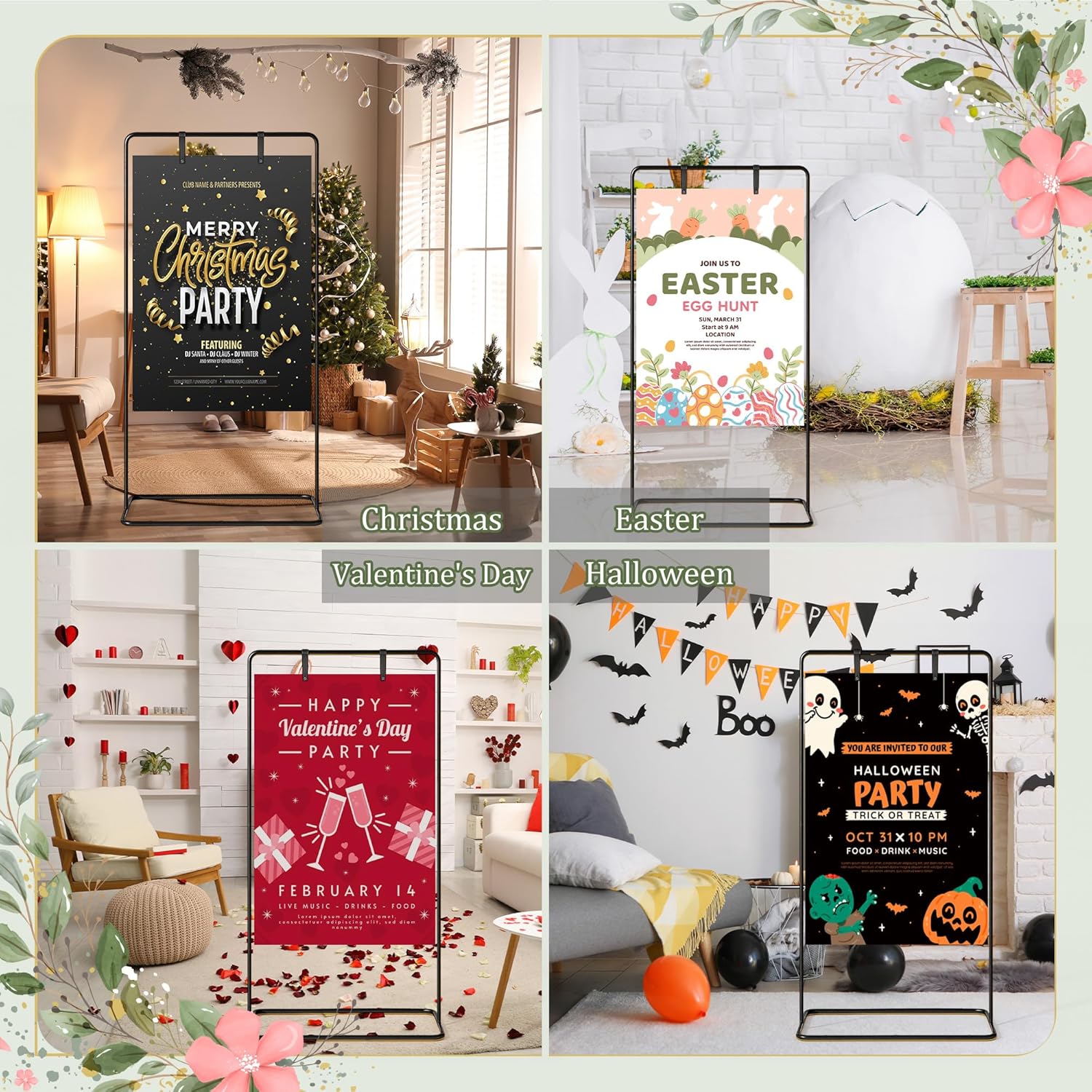 Wedding Holder Sign, Metal Banner Stand with Leather Hanging Straps, Welcome to Our Wedding Heavy Duty Display Rack, Poster Easel Stand for Sign for Birthday, Party, Engagement