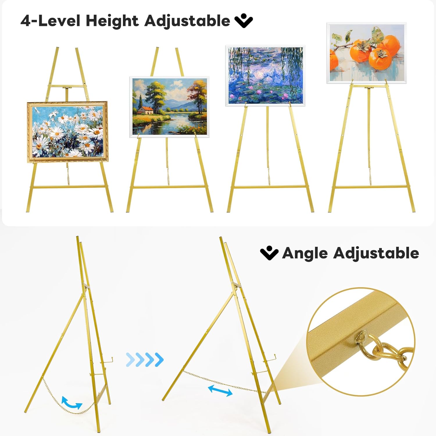 【Versatile & Elegant Gold Stand】Our luxurious golden finish display easel adds a touch of elegance and sophistication to any setting, Perfect as a wedding welcome sign holder, photo display, or retail product showcase.