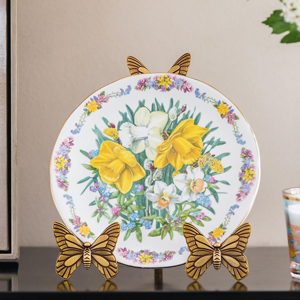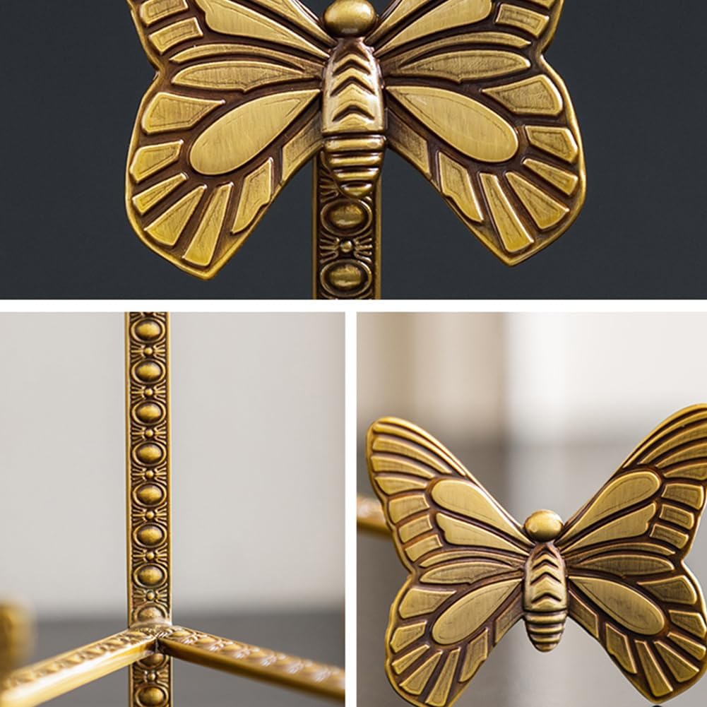 Add a touch of elegance to your home with this brass butterfly plate stand. Perfect for displaying decorative plates, small artwork, or collectibles, this stand is both functional and stylish. Its durable brass construction ensures long-lasting use, while the charming butterfly design adds a whimsical yet sophisticated touch to any room. Whether placed on your mantel, dining table, or in a display cabinet, this stand beautifully showcases your favorite items. The stand is compact and sturdy, designed to hold items securely in place without risk of tipping over. Its versatility allows it to be used for a variety of decorative pieces, making it a great addition to your home or a thoughtful gift for someone special. Ideal for collectors, this butterfly plate stand adds an eye-catching element to any space, elevating the look of your most treasured possessions. Product Features: 1. Dimensions: As shown as picture 2. Material:Brass 3. Color:Gold 4. Package includes:1 * Plate Display Stand Warm Tips: Due to different monitors, the actual color of the item may be slightly different from the picture displayed on the website. The size is manually measured, so please allow a slight deviation within 0.5 inches. As it is a handmade product, some minor flaws are normal designs. This should be known in advance. If the product fails to satisfy you for any reason, please contact us in time and we will provide you with 100% high-quality after-sales service.