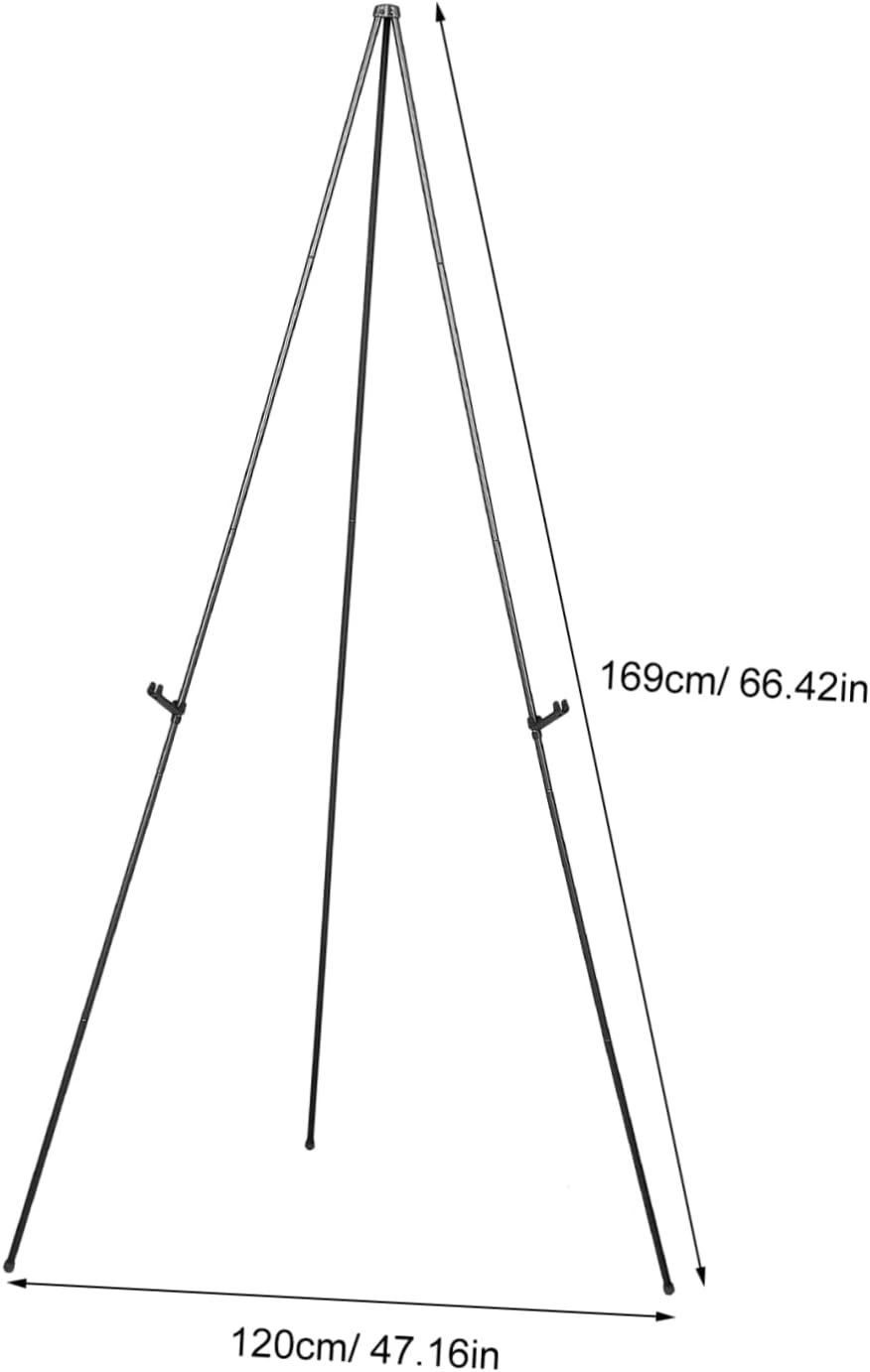 Package List 1x easel stand 1 x storage bag 1 x bracket Characteristics -Color:Black adjustable poster easel -Versatile display: ideal for showcasing paintings, photos, books, and other items, this easel stand is a multifunctional display solution easel stand for painting -Material:Metal tablet stand for drawing -Portable design: the triangle folding easel stand is designed for easy portability, making it for outdoor sketching and indoor drawing sessions display rack for painting -Durable material: made from metal, this easel stand is sturdy and durable, ensuring use for various art projects picture stands for display -Stable tripod structure: the tripod design provides excellent stability, preventing the easel from tipping over during use painting easel stand -Size:169.00X120.00X120.00cm/66.42X47.16X47.16in outdoor easel -No assembly required: this easel stand comes ready to use with no assembly needed metal painting stand base holderGoods Descriptionoutdoor easel This metal tripod easel stand features a sleek, foldable design that combines portability with durability.picture stands for display Its adjustable structure allows for effortless setup and storage, making it ideal for outdoor sketching, painting, or displaying wedding signs. easel for painting The sturdy metal ensures stability on various surfaces, enhancing user convenience