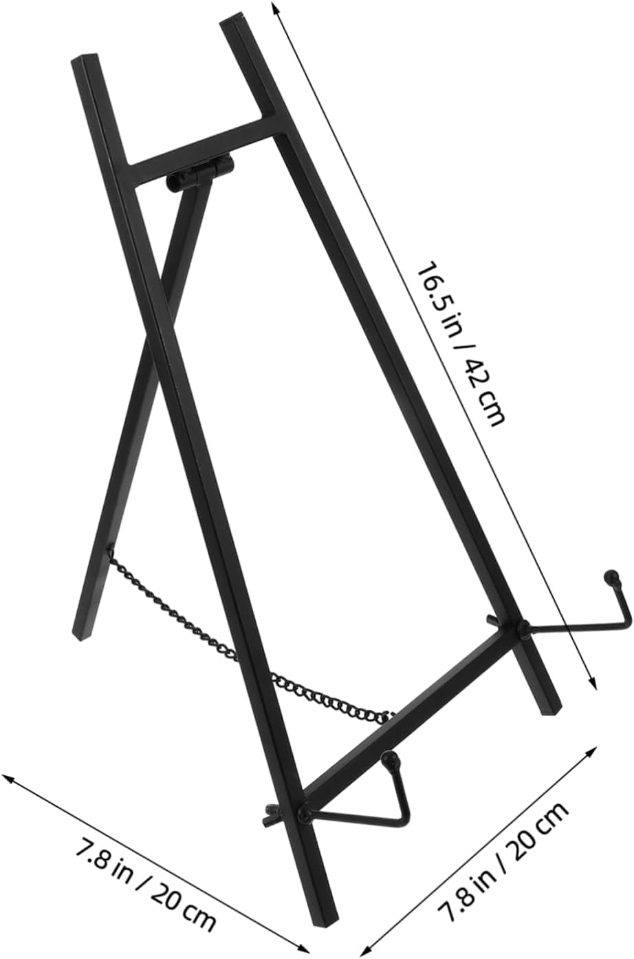 Package Include 1 x Easel Stand Characteristics -Material:Stainless steel picture easel - Portable Design: The easel is suitable for travel. Easy to carry and does not take up many position, can enjoy your travel tripod for sign display - Room decor: This easel stand adds a touch of elegance to your spaces or wedding party, it's a stunning piece that effortlessly stands out and draws attention, adding of charm to your parties easel stand for pictures - Multi-purpose: It is a versatile piece that allows you to showcase a variety of items such as artworks, photos, and more Metal Easel Stand - Color: Black picture holder - Stable structure: It comes with a stable structure that can stand stably on the desktop, making it not easy to overturn painting easel for display - Size: 42.00X20.00X20.00cm/16.51X7.86X7.86in display easels - Strong bearing: stable support feet, suitable for exhibition use, not easy to be knocked down by guests picture frame stand supportGoods Descriptionphoto showing easel Made from stainless steel, it is not only sturdy but also ensures use.easel stand for sign This metal display stand is a versatile and solution for showcasing your artwork and picture frames.picture easel stand Its compact size makes it great for small spaces, saving your room