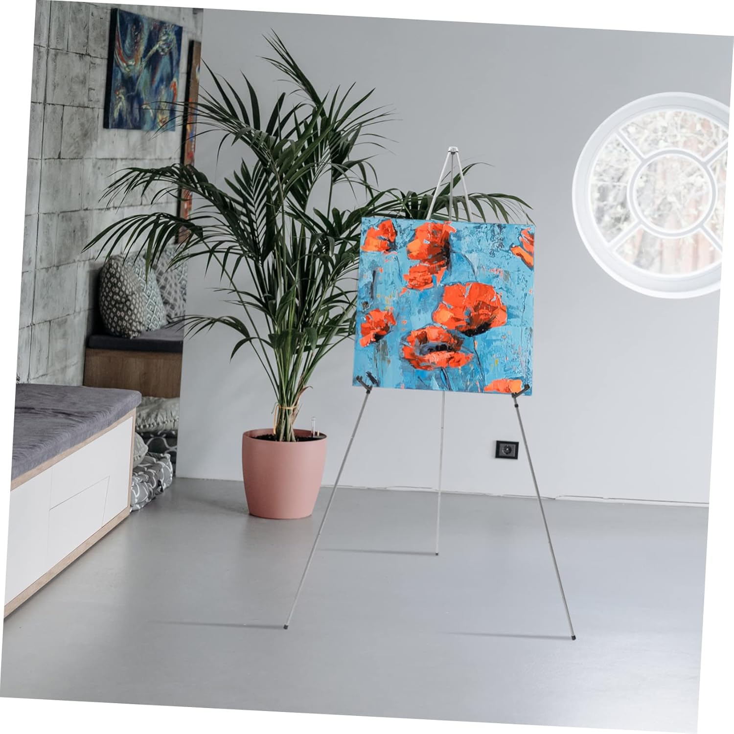 Package List 1 x Paint Frame Features -Color:Silver display easel - Adjustable height: The easel adjustable height display bracket arm can be locked at any position in the easel height, and the bracket arm allows you to safely display items weighing 10 pounds welcome wedding sign with stand. -Material:Metal paint stand - Versatile: It is an ideal display stand for trade shows, office presentations, event and store signs, posters and whiteboards, as well as other lightweight art and boards poster holder. - Super fast installation: it can be removed and unfolded without any . It can be easily stored in the handbag by pulling and folding at easel stand. - Simple installation: The support can be folded, no complex installation, open can be used. Save your energy easel stand for wedding sign. -Size:120.00X120.00X169.00cm/47.16X47.16X66.42in easels for painting canvasGoods Informationsmall easels for display This roll of easy-to-assemble display stand is very simple to install without .art easels for painting Easy to install and stability at the same time, easel made of metal, you can provide better stability.large easel stand for display Suitable for displays, wedding signs, trade shows, store signs, posters, etc. easel weight, not easy to fall.easels for display You can also slide up and down to adjust the height to the desired position, easy to operate.picture easel stand Whenever and wherever, easels are quickly set up for immediate use.wedding sign stand Or if you don't want to spend too much time mounting brackets.easel stand Are you a new assembler? In the face of complex bracket installation will feel unable to start