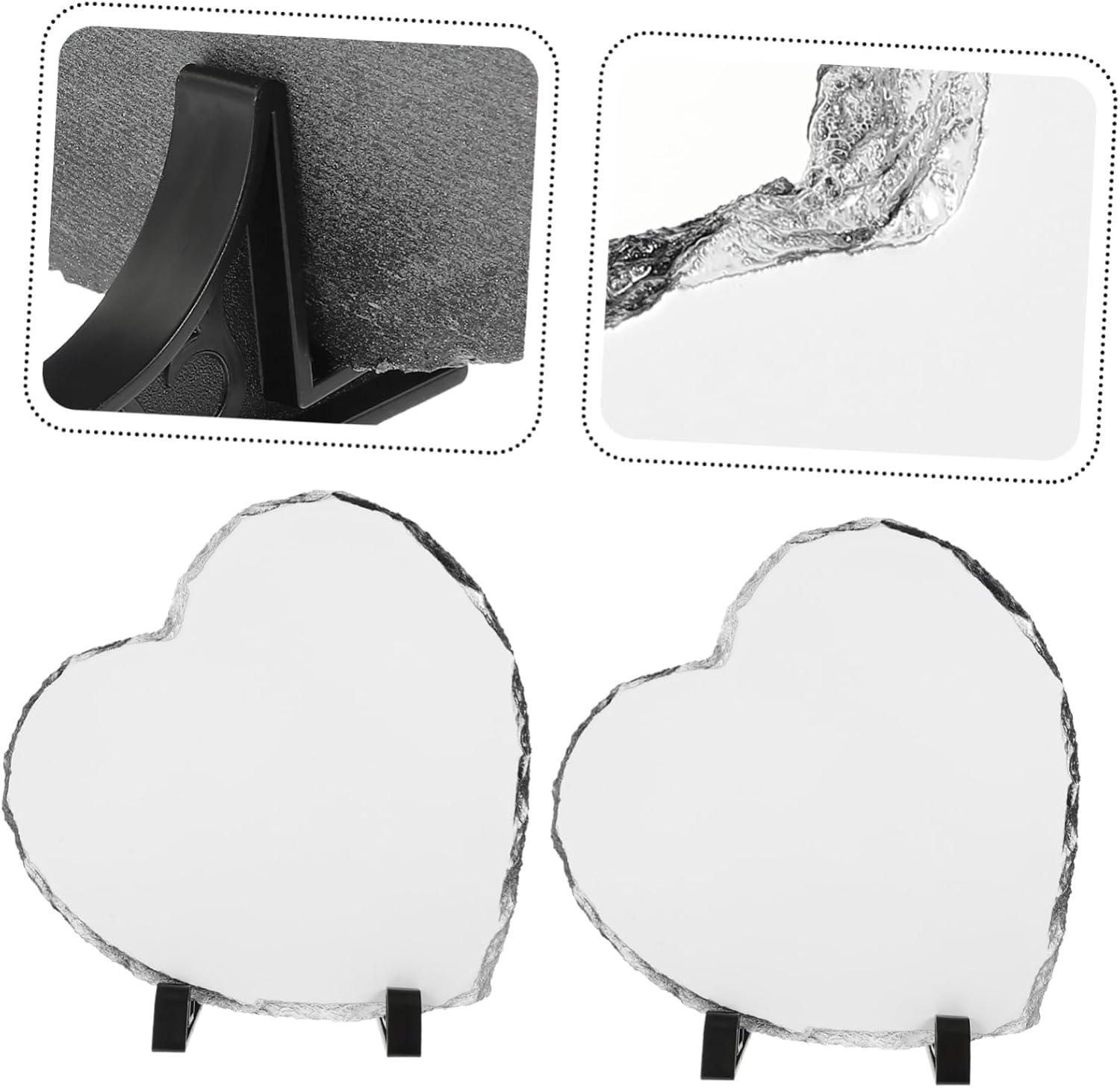 Package List 2 x Blank Photo Plaque with Display Holder Features -Size:19.50X19.50X0.80cm/7.66X7.66X0.31in photo plaque frame -Color:Multi blank photo slates -Material: sublimation picture blanks - A great picture display frame to use for storing precious photos, like graduation, traveling and parties stone - Every photo plaque has a unique texture around the frame since it's DIY photo frame. - This photo frame has a stand, so it can stand stably on the desktop. You can choose your favorite patterns and pictures, and then transfer them to our photo frames sublimation photo blanks. - With fine workmanship and excellent craftsmanship, the beautiful photo frame is an extraordinary one than the photo frame that you have seen sublimation blanks. - It is made from limestone plate and coated with sublimation coating on the front surface which allows being printed with DIY artworks sublimation ornament blanks.Goods Descriptionsublimation blanks Suitable for desktop photo decoration.sublimation photo frame You will get the heat transfer photo frame with display holder, this sublimation blank picture frame is sturdy, and , and the surface is not easy to tear, preserving color for a long time