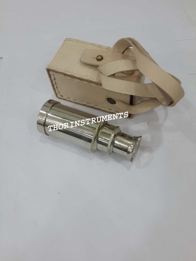 Vintage Beautiful Chrome Finish Telescope with wonderful White leather Case.It has excellent optics for real viewing and would make a wonderful usable nautical decor in any office, boat or home.