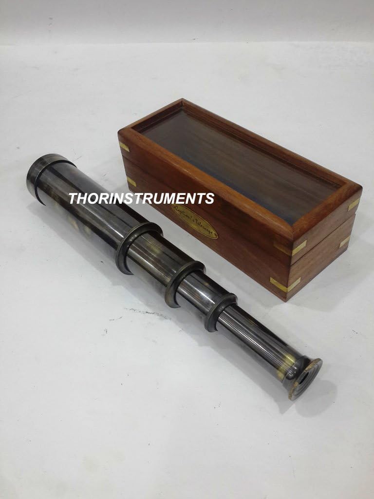 Unique Design Made Of Brass Telescope with Brown Wooden Box . The Perfect Gift for Travelers, Nautical Collector's And Home Decorative. As This is a Hand-Made product so slight color changes and weight changes may occur but Quality of products will be super-fine.