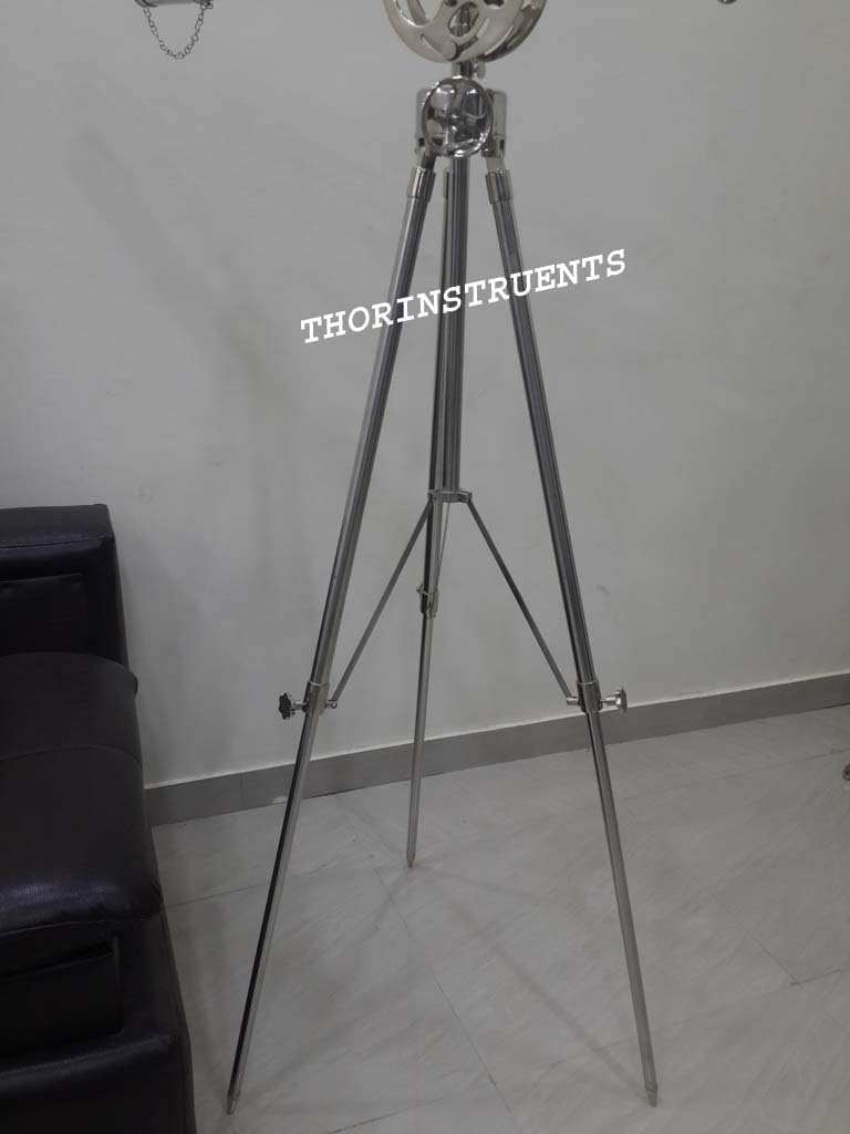 A Unique Brass double barrel telescope with adjustable steel pipe wheel stand and classy chrome finish Interior decorative Item.Beautiful telescope replica is hand made carefully working item,
