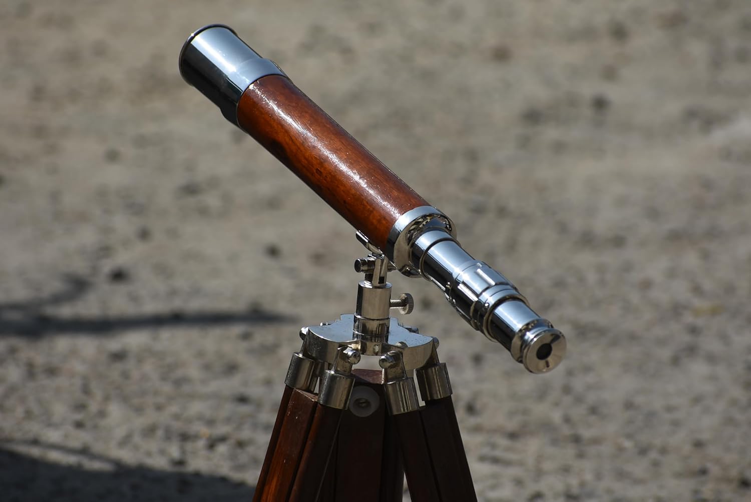 Introduce your child to the wonders of the universe with the Brass Antique Telescope Leather Wrapped Griffith Astro with Wooden Tripod Stand (18"). Combining vintage elegance with functionality, this beautifully crafted telescope features a genuine leather-wrapped brass body and a sturdy wooden tripod stand. Measuring 18 inches in height, it’s the perfect size for children and adults to enjoy, whether for stargazing or as a unique home décor piece. Designed for both practicality and style, this telescope adds a nostalgic touch to any space, whether displayed in a child’s room, a study, or a living room. Its classic craftsmanship makes it an ideal gift for young explorers or anyone who loves vintage-inspired items with a touch of history.