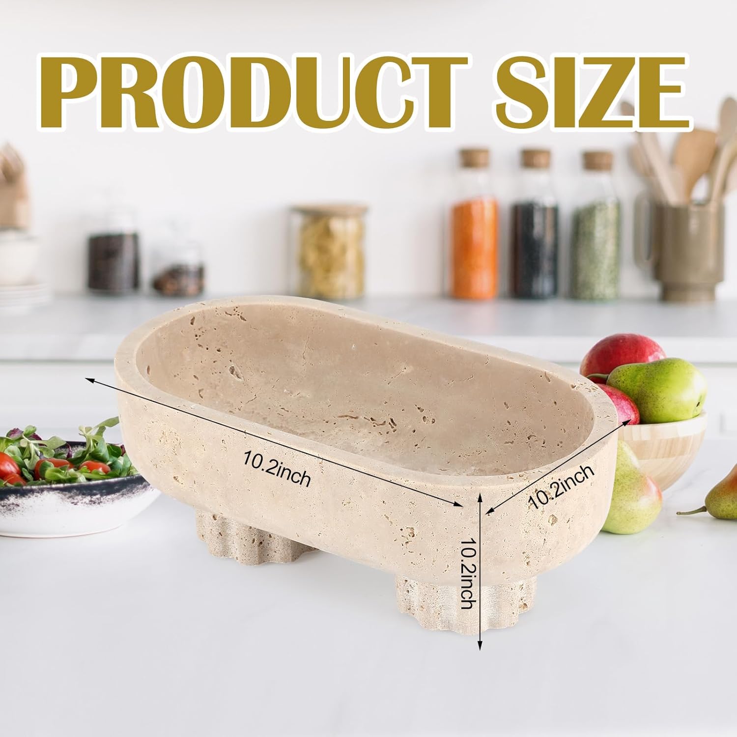 Features: Easy to clean: Despite its luxurious appearance, a scalloped travertine tray is surprisingly easy to maintain. It can be cleaned with a damp cloth, making it a practical choice for everyday use. Elegant and versatile: This travertine stone tray, with its pure beige color and smooth texture, is both practical and stylish. It's the organizer for your perfumes, jewelry, cosmetics, and accessories, keeping your dresser neat without occupying much space. Its ideal design adds a touch of elegance to any setting. Specifications: Material: travertine Color: beige Size: about 10.24 x 5.51 x 3.54 inches/ 26 x 14 x 9 cm(LxWxH) Package includes: 1 x Travertine oval tray Notes: Manual measurement, please allow slight errors on size. The color may exist a slight difference due to different screen displays.