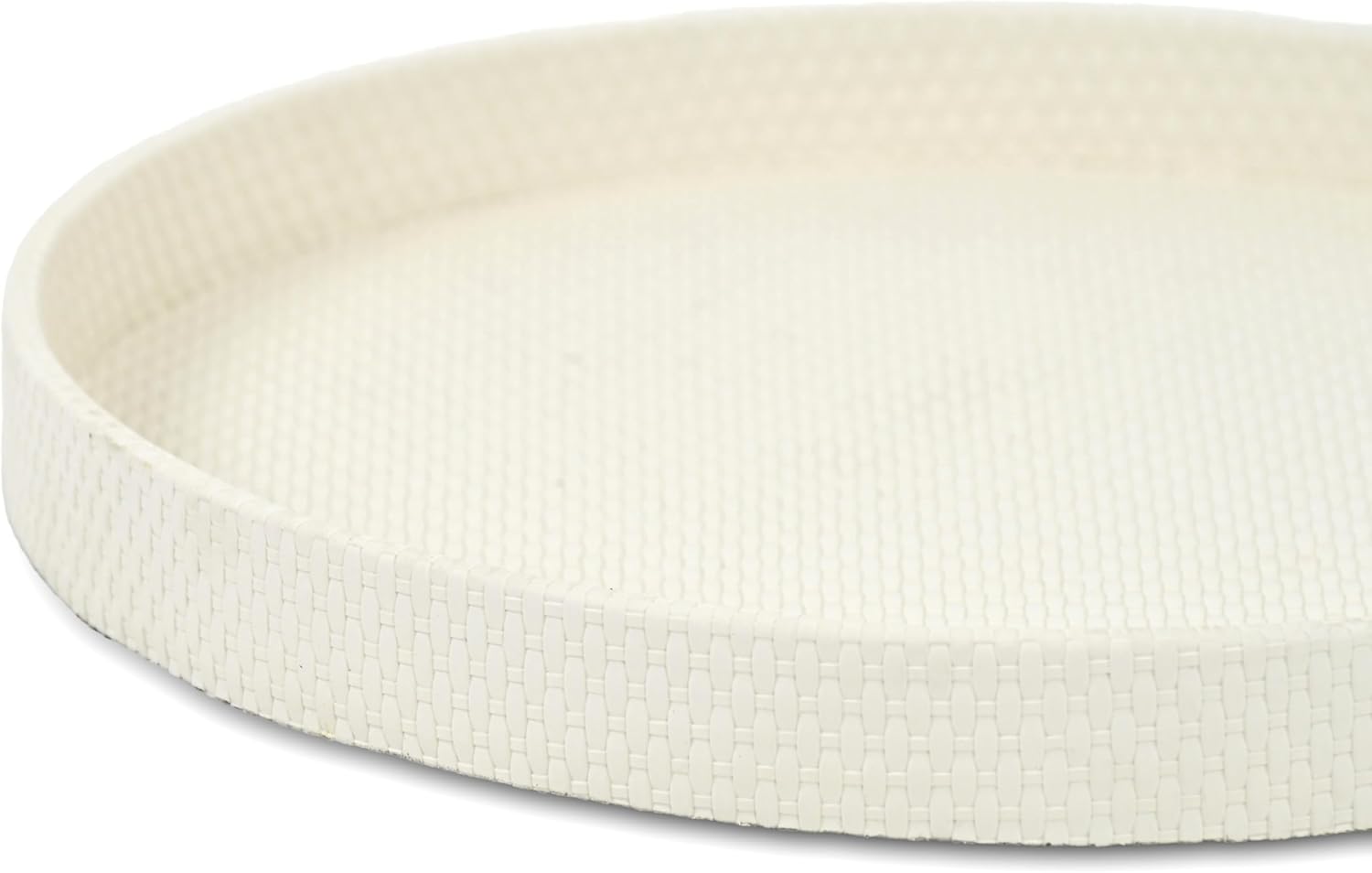 Expertly crafted with a durable wicker weave pattern, the Tamsin Round Serving Tray combines luxury with lasting quality. Its minimalist round design and matte finish add modern sophistication to any space. Measuring 14.25 inches in diameter, it’s perfect for serving drinks, organizing accessories, or displaying decor in your living room, office, or entryway. Fully assembled and ready to use.