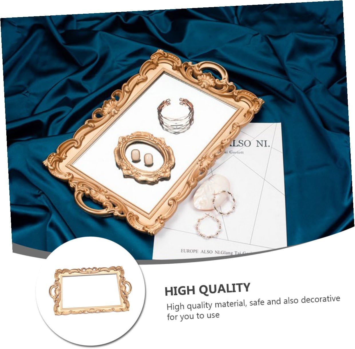 Package Include 1 Characteristics - Material: plastic. - Size: 39.00X24.00X2.00cm/15.33X9.43X0.79in - Color: golden. -Product Info:Mirror tray props - Unique and , can be used for a long time European Mirror Plate. - It can be used for room, home, party for storage use Perfume Storage Organizer. - Delicate and generous modeling, can be used as a nice ornament Cosmetics Storage Plate. - With fine craftsmanship, not easy to wear and tear, very practical in use Makeup Tray. - It has a simple design, but very practical in use and decorative in look Retro Makeup Tray.Goods DescriptionHome Storage Plate It is made of material, .Room Decor Tray This item is a home cosmetics storage tray.Cosmetics Storage Plate Special mirror tray design.Photo Props Suitable for home, living room, kitchen and so on.Cosmetic Storage Tray Perfect as a display tray or cosmetic tray for many occasions' use