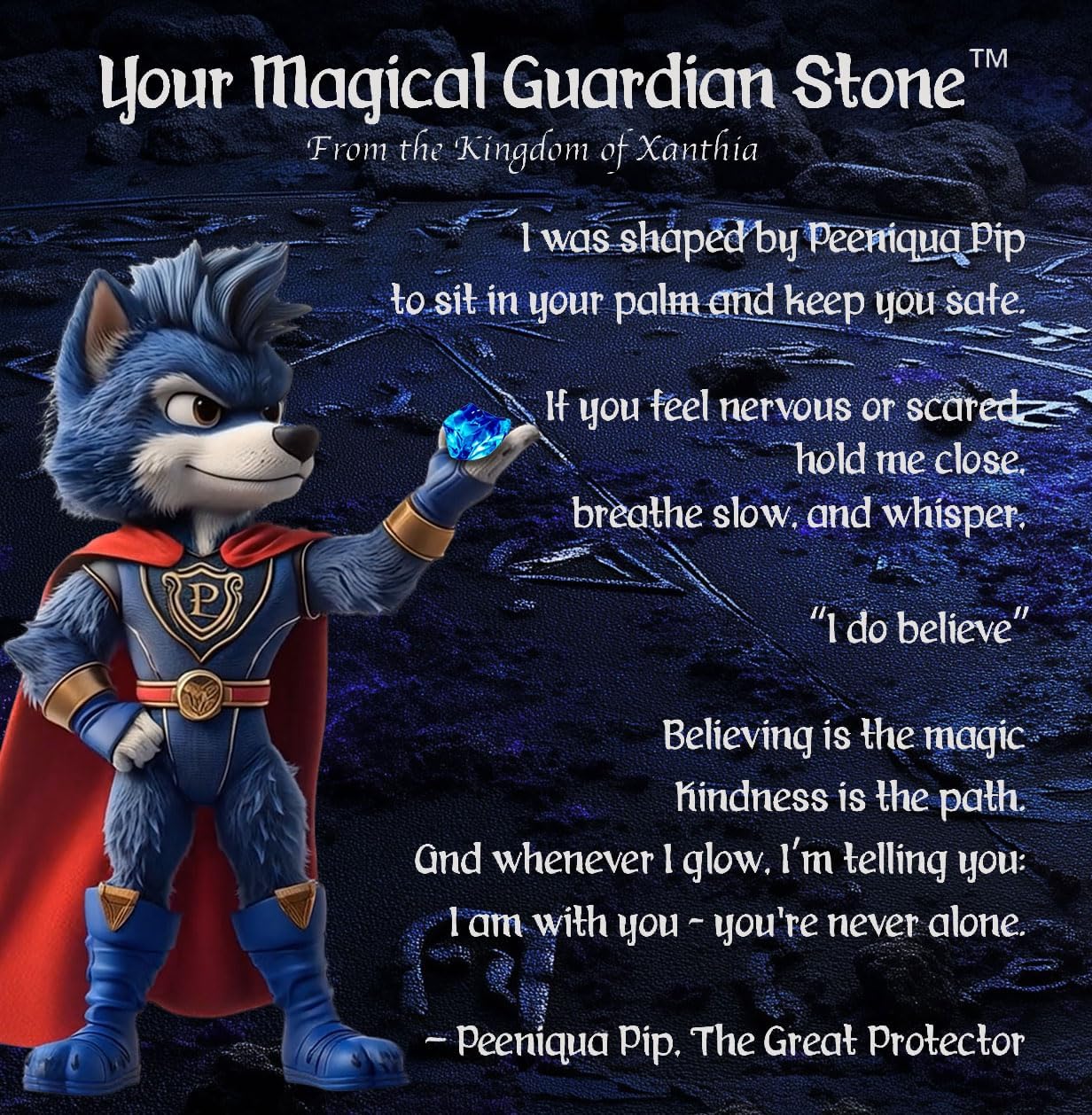 The Magical Guardian Stone Authentic Collector’s Edition from The Legend of Peeniqua Pip — a luminous crystal keepsake inspired by the enchanted Kingdom of Xanthia.Each Guardian Stone is a hand-polished, clear-blue resin artifact embedded with rare-earth glow flakes. Place it under bright light or sunlight to charge; in low light it emits a soft, ethereal after-glow that adds atmosphere to desks and shelves and invites the imagination to wander.Crafted for display and gift giving, the Stone carries the spirit of courage, kindness, and belief at the heart of the Peeniqua Pip story universe.Collector’s Edition IncludesMagical Guardian Stone (approx. 3" crystal form, clear-blue resin with glow flakes)Custom display jewel case with embossed crest and satin-lined interiorCertificate of Origin (Brendlewood Entertainment)Cautionary & care insert (handling, charging, and display tips)Premium gift packagingQuality & Care Designed and developed in Las Vegas, Nevada, USA; produced under strict quality control standards for collectible-grade presentation. Not a toy; ages 8+.
