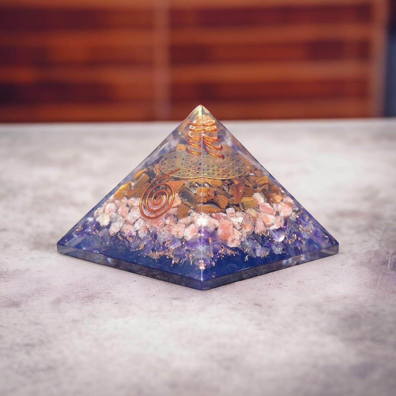 🌟 Orgone Iron Will Pyramid – Strength, Focus & Personal Power 🌟 Enhance your willpower, confidence & mental resilience with the Orgone Iron Will Pyramid, crafted with Tiger Eye, Sunstone & Amethyst. Each crystal is carefully selected to boost determination, clear negativity, and empower personal growth. This Orgone energy generator ensures that your aura remains strong, focused & balanced, making it perfect for leaders, entrepreneurs, and anyone seeking self-improvement. 💎 Powerful Crystal Combination for Strength – Tiger Eye (willpower & confidence), Sunstone (motivation & positivity), and Amethyst (spiritual clarity & intuition). ⚡ Orgone Energy for Mental Clarity – Clears negative energy, enhances focus & determination, and promotes emotional stability.