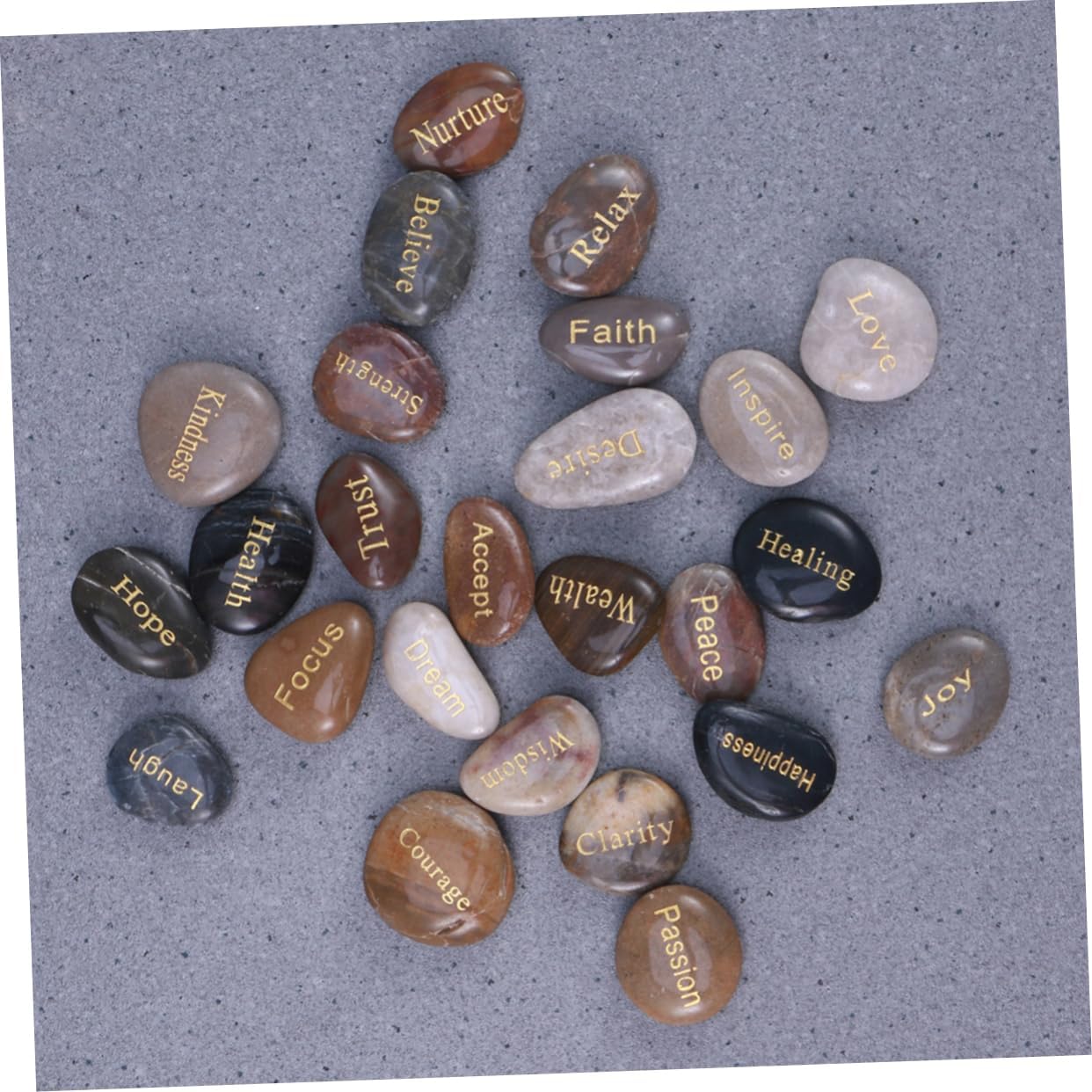 Package Include 25 x Engraved stones Features - 25 inspirational and encouraging words: happiness, believe, faith, etc inspirational stones with words. - Material: Stone words stones. - Size: About 3-5cm in diameter. - Unique to family, friends, coworkers and keep them for yourself inspirational stones. - ColorAssorted Color engraved stones with words - Words engraved onto well polished natural engraved stones. - You can place them on the table, desk, drawer, or plant pot for decoration.Goods Informationwords stones These are 25pcs engraved stones with inspirational words, cheering your up in life, work and school.inspirational stones You may keep them for yourself for give some to your friends, families as unique
