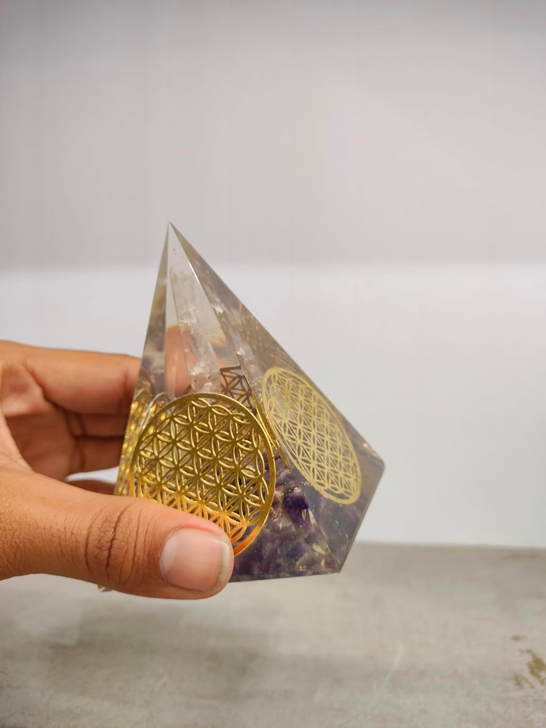 🌟 Amethyst Orgonite Nubian Pyramid – Chakra Balancing & Spiritual Protection 🌟 This handmade Amethyst Orgonite Nubian Pyramid is designed for chakra balancing, deep meditation, and energy healing. Infused with Amethyst, Orgone energy, and the Flower of Life symbol, it enhances spiritual awareness, removes negativity, and shields against EMF radiation. 🔮 Key Features & Benefits: 💜 Amethyst for Spiritual Growth & Peace – Enhances intuition, wisdom, and emotional stability. ⚡ Orgonite Energy Healing – Neutralizes negative energy, creating a space of high-frequency positive vibrations. 🌸 Flower of Life Sacred Symbol – Aligns energy fields and promotes universal balance & harmony.
