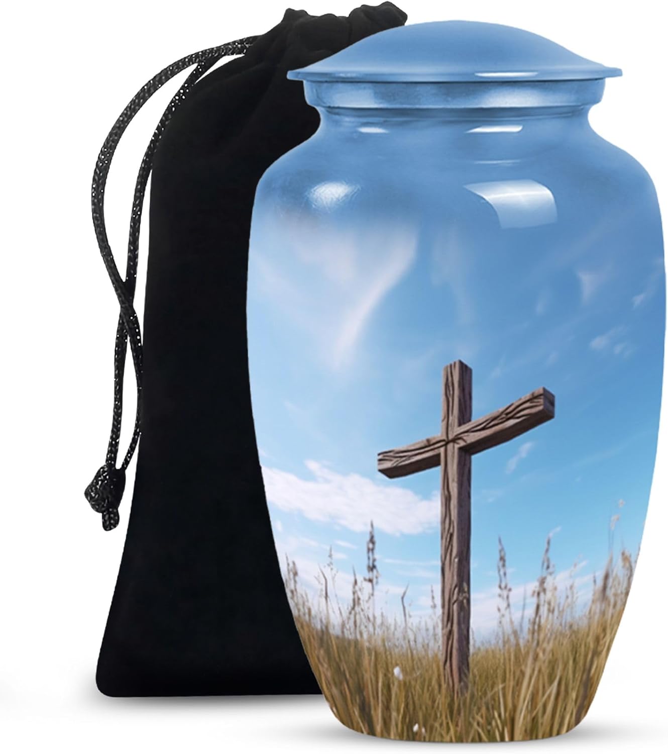 This Unique design urn for human ashes is designed to honor the memory of an adult loved one. With a large capacity of 200 cubic inches, it offers ample space to hold the ashes of an adult individual, making it perfect for families seeking a dignified resting place. Measuring 10 inches in height, this memorial urn is a meaningful tribute that complements any home or space. Its elegant, decorative design adds a personal touch while serving as a lasting remembrance. Ideal as a funeral urn or cremation urn for human ashes, it provides both beauty and functionality. This urn is crafted to provide a respectful final resting place, whether displayed in a home or placed in a columbarium. Perfect for those looking for a tasteful and thoughtful way to memorialize their loved one, this urn helps keep cherished memories close. The decorative details and thoughtful craftsmanship make it a beautiful tribute to a life well-lived.