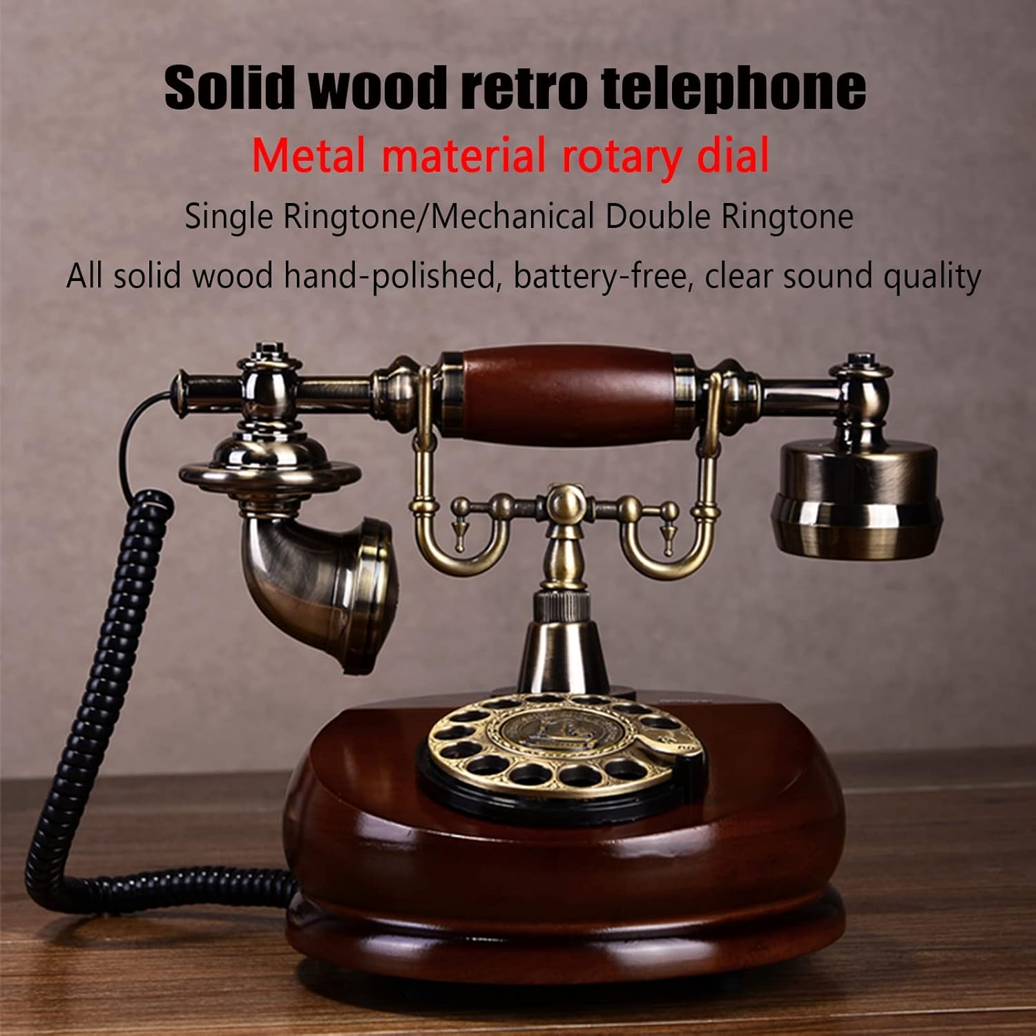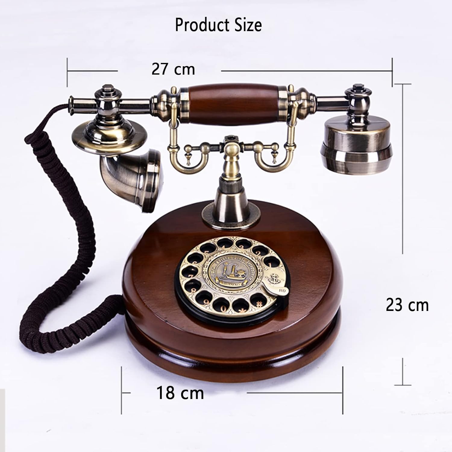 Product Description: Material: Wood + Metal Product Size: 27 * 18 * 23 cm Product Weight: 2 kg Product Features: 1. Rotary dial, redial. 2. Connecting device: no battery, phone line connections. 3. Retro rotary dial: metal die-cast, plated with bronze, shows metallic. Package Includes: 1 x Telephone 1 x Handset 1 x Telephone Cord