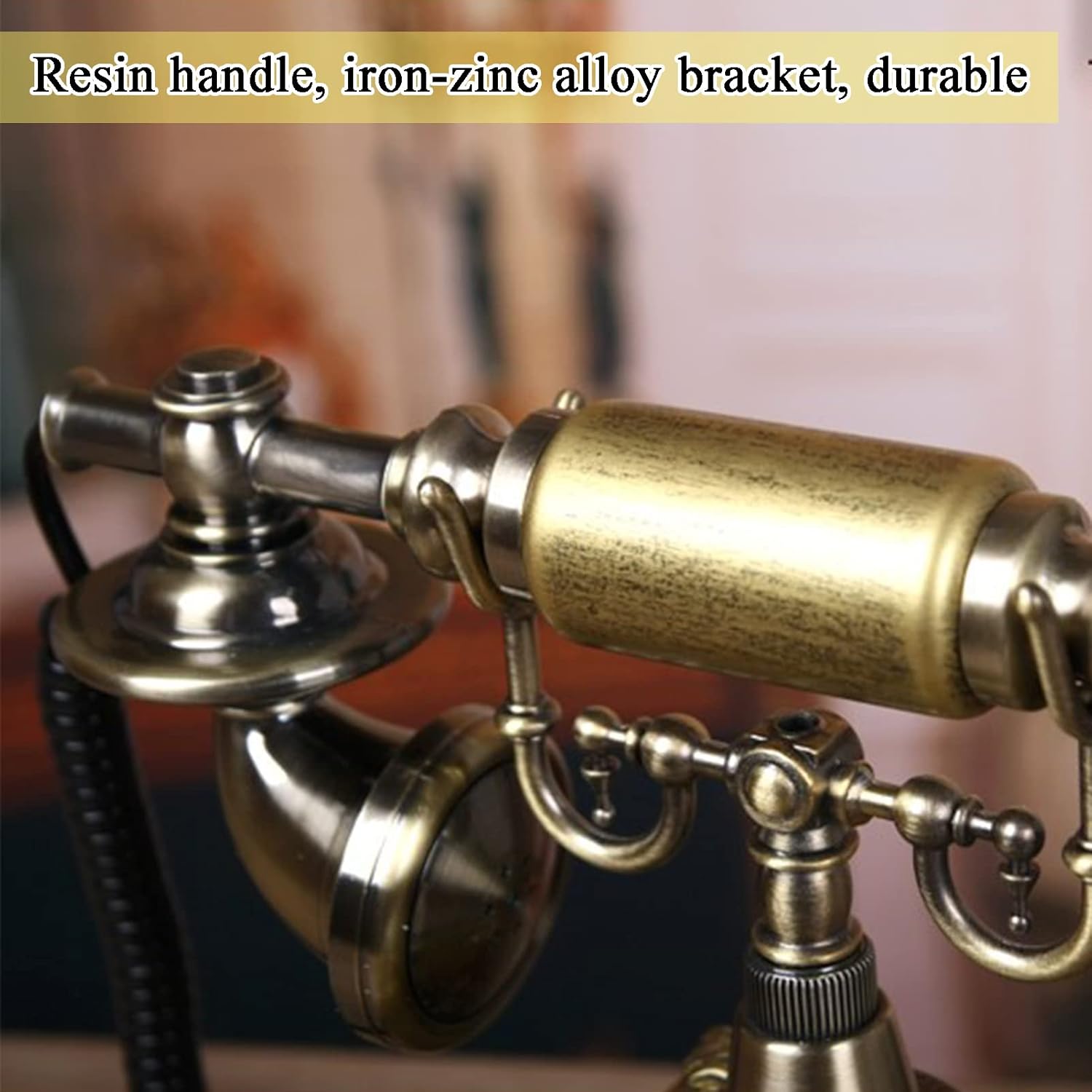 We always pay attention to what you need in your life and strive to make your daily life safer, more convenient and enjoyable, contact us by mail and send the ideas of the products you need, we will listen to every customer's suggestions and improve our products for the products you rely on. Material: resin body + alloy bracket Size: 22.5 x 25.5 x 18 cm In this information age, few people no longer use landline phones Smartphones are everywhere Some people say I don't know if the person controls the cell phone or if the cell phone controls the person Sometimes I miss fixed Rotating dial, mechanical retro classic metal ringtones At the same time, the redial function has been added to meet your daily needs.