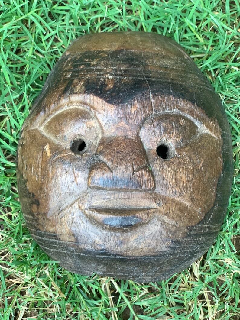 This tribal looking mask is a copy of old mask made with old wood. In old times tribal people use this when their is some special occasion to celebrate and dance. This was also used on the top of home to keep evil spirits away. This can be a nice wall decor.