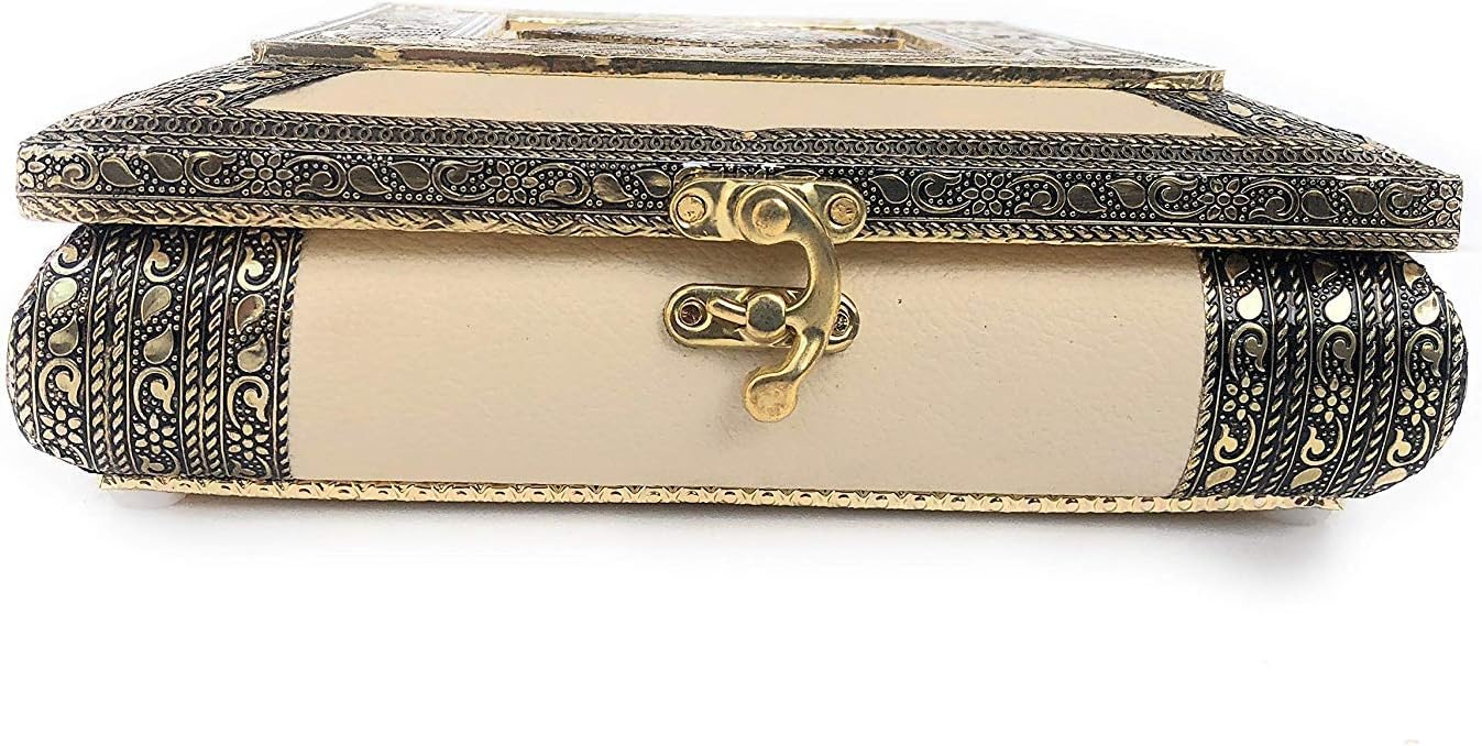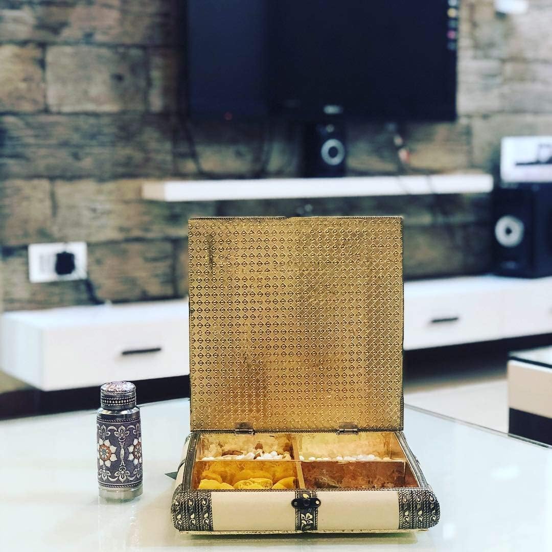 Royal designed beautiful wooden and aluminum handicraft dry fruit box with Rajasthani art work .It showcases the rich art of Rajasthan . Can be used as dry fruit box , mouth freshener box , wedding gifts and many more.💚