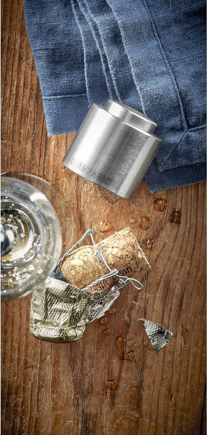 The WMF Clever & More champagne bottle stopper is ideal for those celebratory moments. There are times when you just can not finish the bottle. Help preserve and extend the life of wine or champagne with the WMF bottle stoppers. Sealing the bottle slows the oxidation process and help maintain the fizz in Champagne and sparkling wines.Appealing at first glance, the sleek contoured body and polished finish provide an interesting contrast. Made from Cromargan 18/10 stainless steel, the bottle seal sits firmly on top of the champagne bottle ensuring a completely air tight seal. Simply place over the rim and apply pressure until in place.An innovative design to compliment any sophisticated setting. The Clever & More Champagne seal is a hardwearing product that can be complimented with a variety of pieces available within the Clever & More range. As with all WMF products, this Champagne bottle seal comes with a guarantee against manufacturing and material defect. Completed with a high quality gift box, WMF provide a product ideal for a gift.As a brand WMF is known for its versatile stylish range of products and reliability in quality and finish. For over 150 years WMF has been making cooking, dining and drinking a real experience whilst maintaining professional standards and progressing manufacturing technologies. Providing high quality products in a variety of different styles and designs to meet each individual taste and continuously offering cutting edge designs from Art Nouveau and Art Deco right up to today’s contemporary contours and designs.Well-known designers from all over the world are in constant search of innovative ideas for us, whilst our product development keeps track of the customs of different cultures world-wide. This enables us to detect trends and to develop designs which break away from usual precipitations. Numerous international design awards prove our success. Renowned for innovative products and designs, WMF strive to develop an extensive range of products which inspire and make cooking, dining and drinking an event.