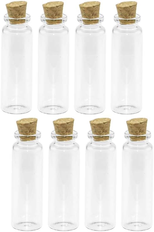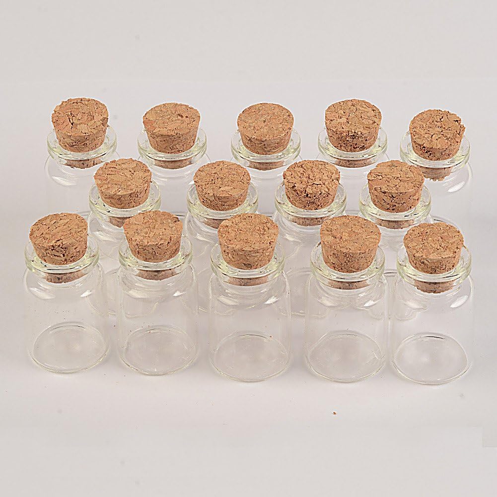 Capacity and size: 6ml (22x35x12.5mm) Outside Diameter: 22 mm Tall: 35mm Opening: 12.5mm Quantity: you will get 100 bottles with corks colour: Clear Transparent Materials: Glass Bottle With Cork use: Crafts, Mini Glass Bottles, Empty cosmetic containers, Wedding Gift ,Bottles With Corks About My Company
