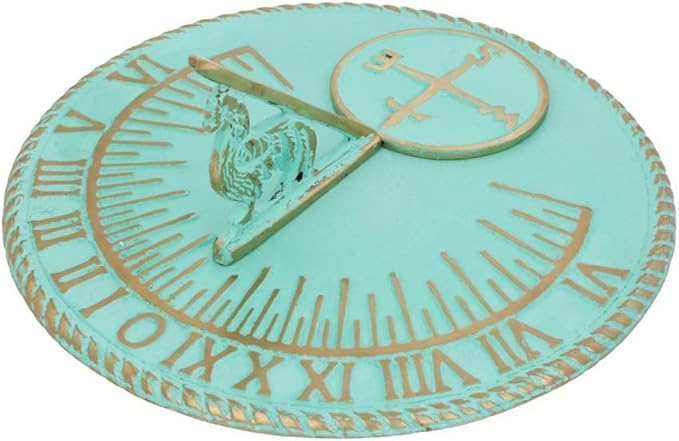 Renovators Supply Manufacturing Sundial Verdigris Finish Brass 10" Dia Vintage Sun Dial Garden or Lawn Clock Compass NESW Plaque and Rooster Dial Round Patio Outdoor Compass Sundials for Yards VINTAGE COUNTRY THEMED VERDIGRIS FINISH SOLID BRASS SUNDIAL COMPASS If you are looking for a unique and timeless gift for your loved ones, then we have got you covered. Gift them these pretty antique pieces of Solar Sundials, these decorative and functional farmhouse style decor curb appeals would not let you down!