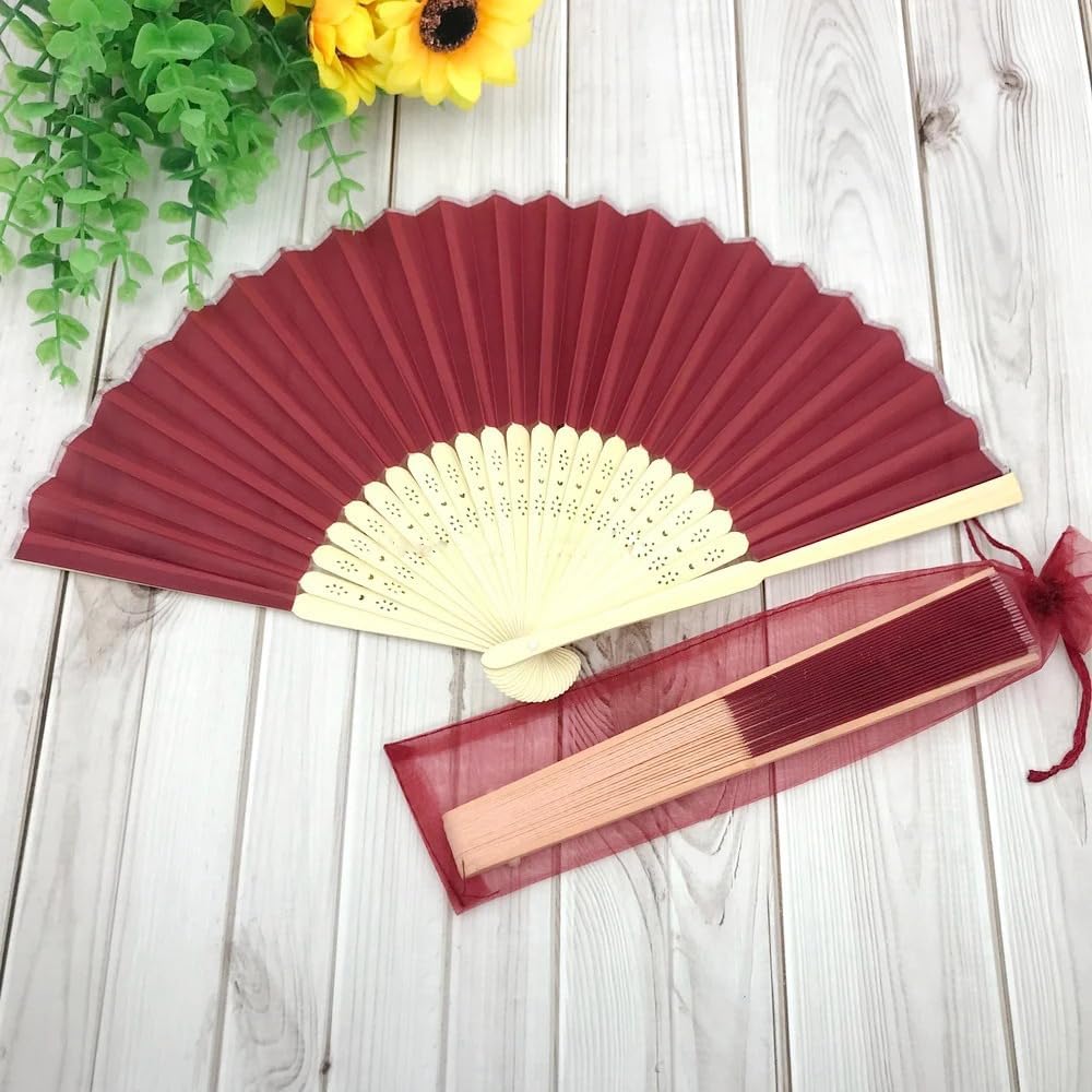 Material Size: Length 20.5cm, Width 33cm Packaging: 20pcs/30pcs/40pcs/50pcs/60pcs/100pcs in white organza bag. We can also engrave names and dates MATERIAL: WOOD These fans are made from wood and woven fabric, this hardwood has a natural scent and is ideal for making fans. Colour: Natural wood colour. Fans are made from natural wood and usually have colour variations. It is normal for the same fan to show different colours. Good wood aroma. Wooden folding fans have a light, pleasant fragrance that is not too strong for sensitive noses. Practical and artistic: This is a handicraft with a vintage character. This vintage style fan not only represents elegant classical beauty, but also brings you coolness in summer and decorates your home and office. These fans will bring you a fresh and elegant feeling. WIDE APPLICATION: Wooden folding fans are suitable for home, office, teahouse and stage, also can be used as gifts for your family or friends, also can be used as party favours in weddings, birthdays, baby christening, bridal shower, graduation or any outdoor or indoor events, add chic atmosphere to the party, your guests will surely love it.