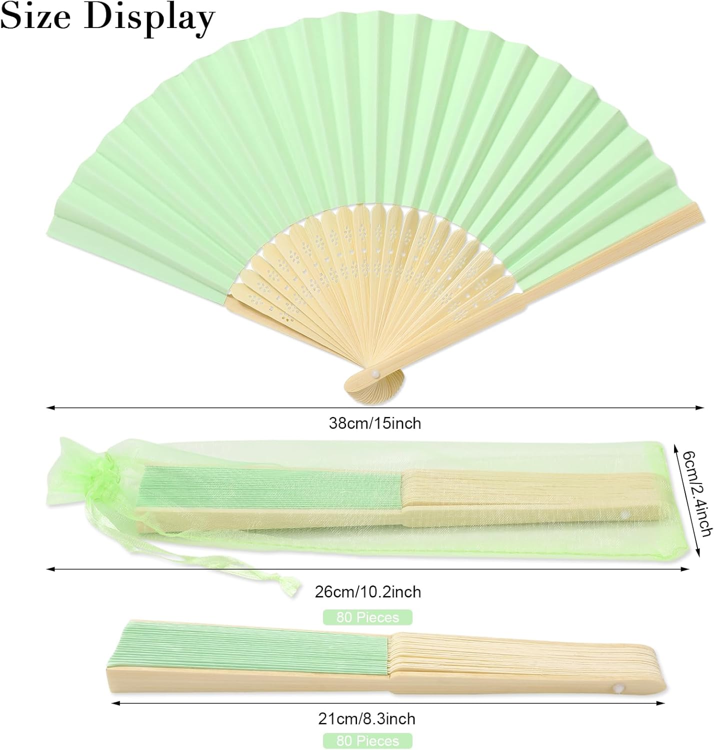 Features: Chic design: Our sage green wedding handheld fans, exquisite and elegant, great for wedding favors, party decorations, photo props, DIY projects, etc.. Widely usage: Made of quality material, reliable and sturdy, can be applied for wedding, birthday, baby shower, bridal shower and other occasions, to create the joyful and fun atmosphere. Specifications: Material: paper Size: shown in pictures Package includes: 80 x Wedding Handheld Fan
