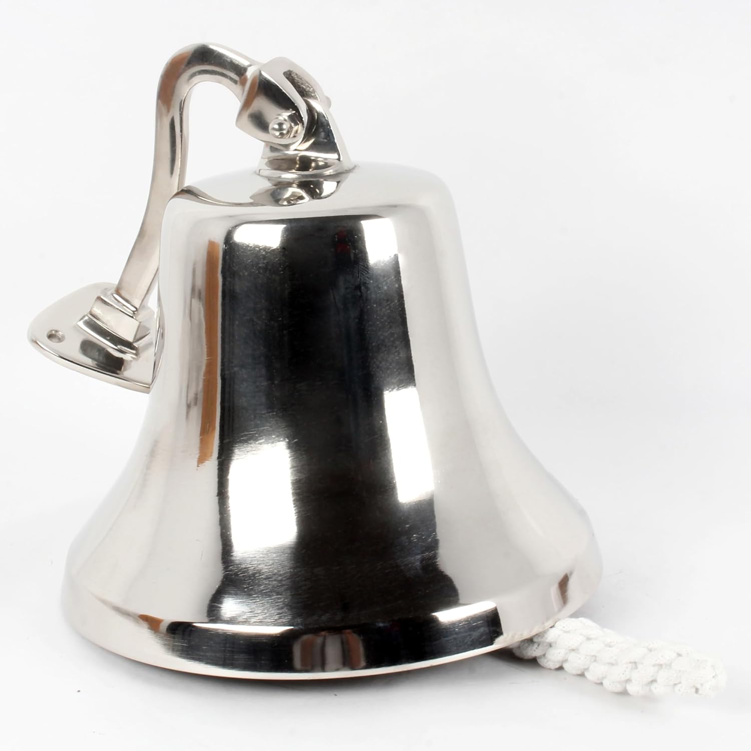 This door fancy decorative country hanger design, your outdoor porch will look plain and bare no more. This Aluminum -casted mounted beauty bell will give your house the exact amount of loud forged charm.This Aluminum bell is hand made in the finest traditional sandcasting method by the artisan and then polished and chrome plated to an immaculate mirror finish is a beautiful and melodic addition to any home or classroom. It has a rich, resonant sound that is perfect for calling students to class or signaling the end of a meeting. This bell would also make a lovely gift for a teacher or musician. The Aluminum bell has a classic design that will look elegant in any setting. It is made of high-quality aluminum and has a polished chrome finish. This bell is perfect for use in a variety of settings, including classrooms, music rooms, offices, and homes. It is a great way to add a touch of elegance to any occasion. This Bell is made from solid aluminum equipped with a stylish handle giving it a vintage appearance. Once shook the school bell makes a high ringing sound perfect for your use.This elegant aluminum bell brings the memories of golden days of the past. Get this charming bell measuring to experience the positive vibes created by the pleasant tone of this bell. The nautical bell features a highly polished body accented with a handle designed in a classical style. The Aluminum bell is a wonderful addition to your collection of nautical home decor items. The Aluminum bell can decorate your tabletop or showcase. It can also be used as a calling bell in your small office or beach side restaurant. Get this ship bell to your home this season and bring the memories of adventures in the sea to your home.