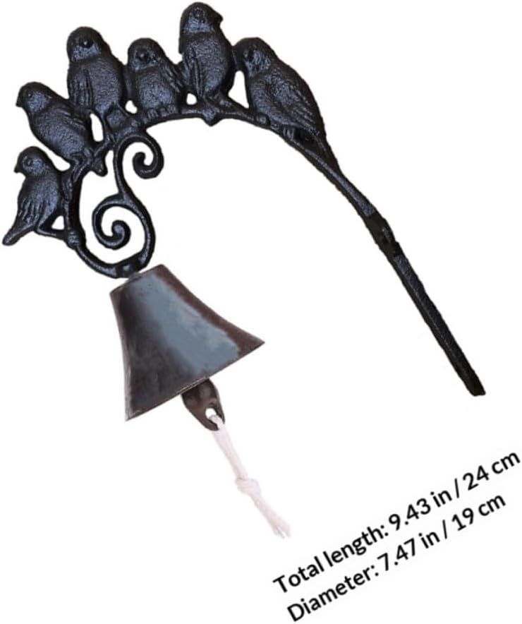 Package List 1 x Iron Wall Bell Characteristics -Product Info:Retro bell wall hanging - Size: 24.00X19.00X10.70 cm/ 9.43X7.47X4.21 inch. - Color: Black. - Material: Iron. - Perfect for placing on any door in your farmhouse, garden, yard, or front porch bells decor. - Hanging it on a patio or beside a doorway for use as an old-fashioned dinner bell or as a unique alternative to a doorknocker hanging iron bells. - This bell features an ornate post that mounts flush to any wall wall mounted dinner bell. - Retro style full of color, anti-rust treatment on the surface. The ringtone is crisp, please to use it. - Made of cast iron material, beautiful appearance, clear texture,solid and .Goods Descriptionantique bell Whether you use it as a welcome doorbell on your porch or on your patio to let your guests know dinner is served, the delightful sound of this doorbell will ring loud and clear.vintage dinner bell The classic cast iron doorbell that have that old world charm and an antique rust finish