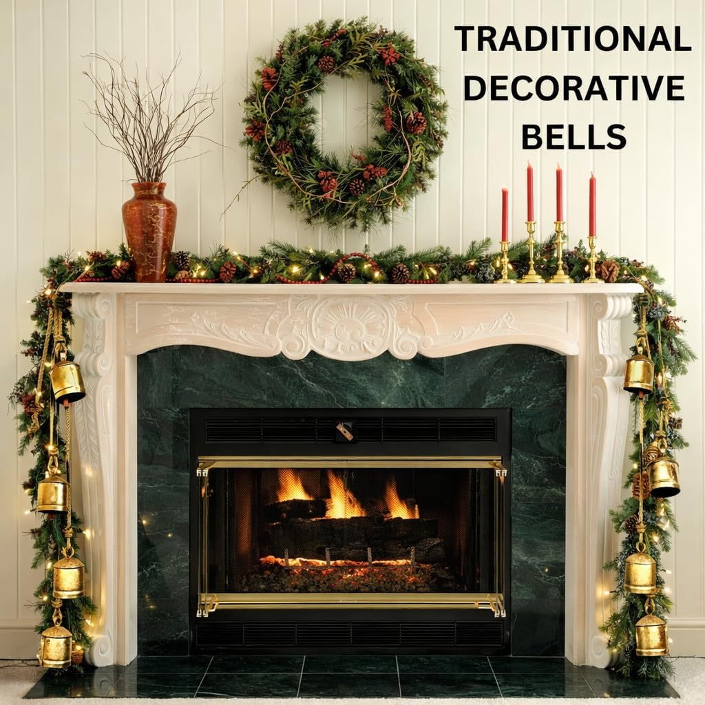 Add a touch of rustic charm to your home with this enchanting 4-bell cluster of decorative cow bells. Each bell in this carefully crafted set measures approximately 4 inches, creating a harmonious arrangement when hung together. The bells feature a beautiful brass-coated finish in a warm gold tone, complemented by natural jute rope that adds to their country-style appeal. Perfect for Christmas decorations, these vintage-inspired bells can also serve as year-round decor, bringing shabby chic character to any space. The round bells produce a gentle, melodious sound when moved by the breeze, making them ideal for porches, patios, or indoor spaces. The set includes mounting hooks for easy installation, and the durable construction ensures lasting beauty. Whether used as holiday ornaments or as part of your everyday decor, these versatile bells bring a delightful blend of traditional craftsmanship and decorative elegance to your home.