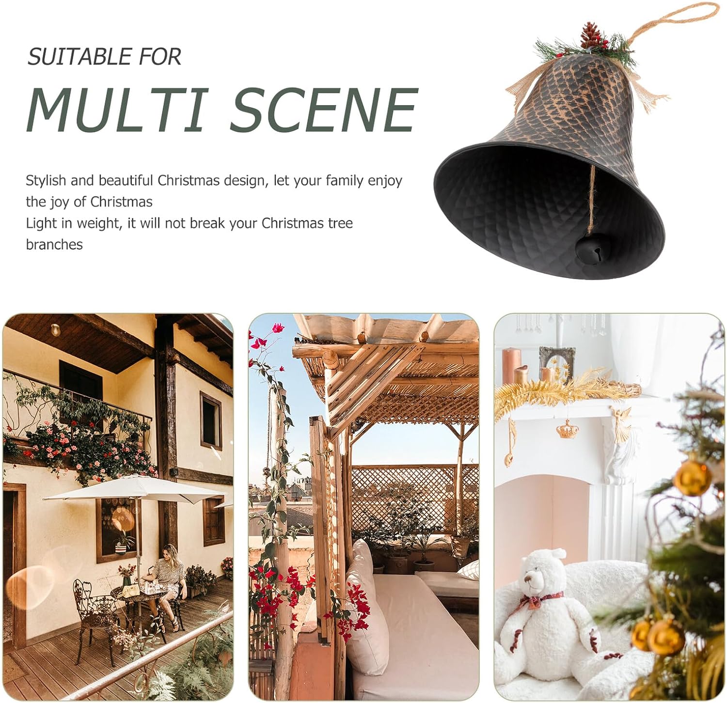 Package Include 1 × Xmas Bell Features -Size: 40.00X21.60X21.60cm/15.72X8.49X8.49in -Material: Metal -Color: Coffee -Product Info:Metal horn hanging decoration - Fine workmanship and good texture ensures the wonderful visual effect and bring beauty hanging bell. -The bell can make a sound that will add a strong festival atmosphere, and bring you much more joy Bell Decor. - The hanging bell adornment can help create a warm and pleasant Christmas festival atmosphere decorative bell hanging decor. - The Christmas bell hanging decor is made by good material, not easy to break or deform. -On Christmas Day, the bell will become an indispensable item for decorating your home hanging bell ornament.Goods Descriptionmetal hanging bells It is a Christmas theme hanging decor.decorative bell hanging decor Are you looking for a hanging ornament for your home decoration during the Christmas? Our product can meet all your requirements with and reliable material for long time use