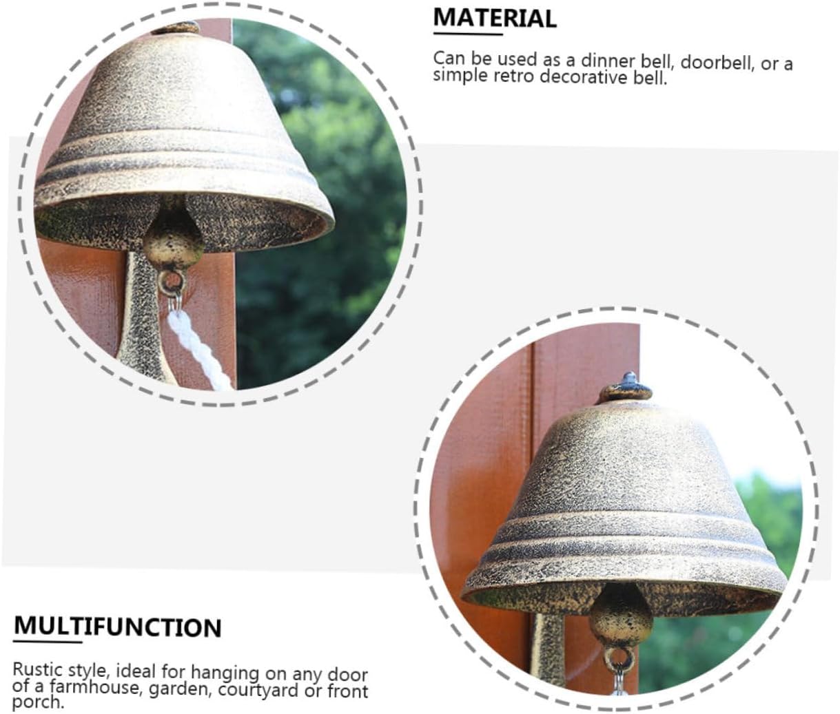 Package List 1 x Cast Iron Doorbell Characteristics - Material: Cast iron, cotton rope Bell Pendant. - Color: Assorted Color Wind Bell Hanging Decor. - Size: Approx. 24.00X17.50X17.50cm/9.43X6.88X6.88in Wall Mounted Bell. - Eye-catching and life-like. The present for your friends who like to decorate their house Dinner Bell. - Crisp ringtone makes it become a dinner bell or welcome bell Housewarming present. - Cast iron doorbell, beautiful appearance, clear texture, solid and strong Rustic Style Door Ornament. - Make the empty and boring walls become vivid and the temperament of your entire space. Wall Wind Bell - It features a vintage and retro style, full of rustic style and atmosphere Holiday Scene Decor.Goods DescriptionHoliday Scene Decor Its unique design can not only decorate your house but also add a touch of whimsy and unexpected style to your doorway.Iron Doorbell want to decorate your courtyard or garden? If so, our cast iron doorbell is carefully prepared for you