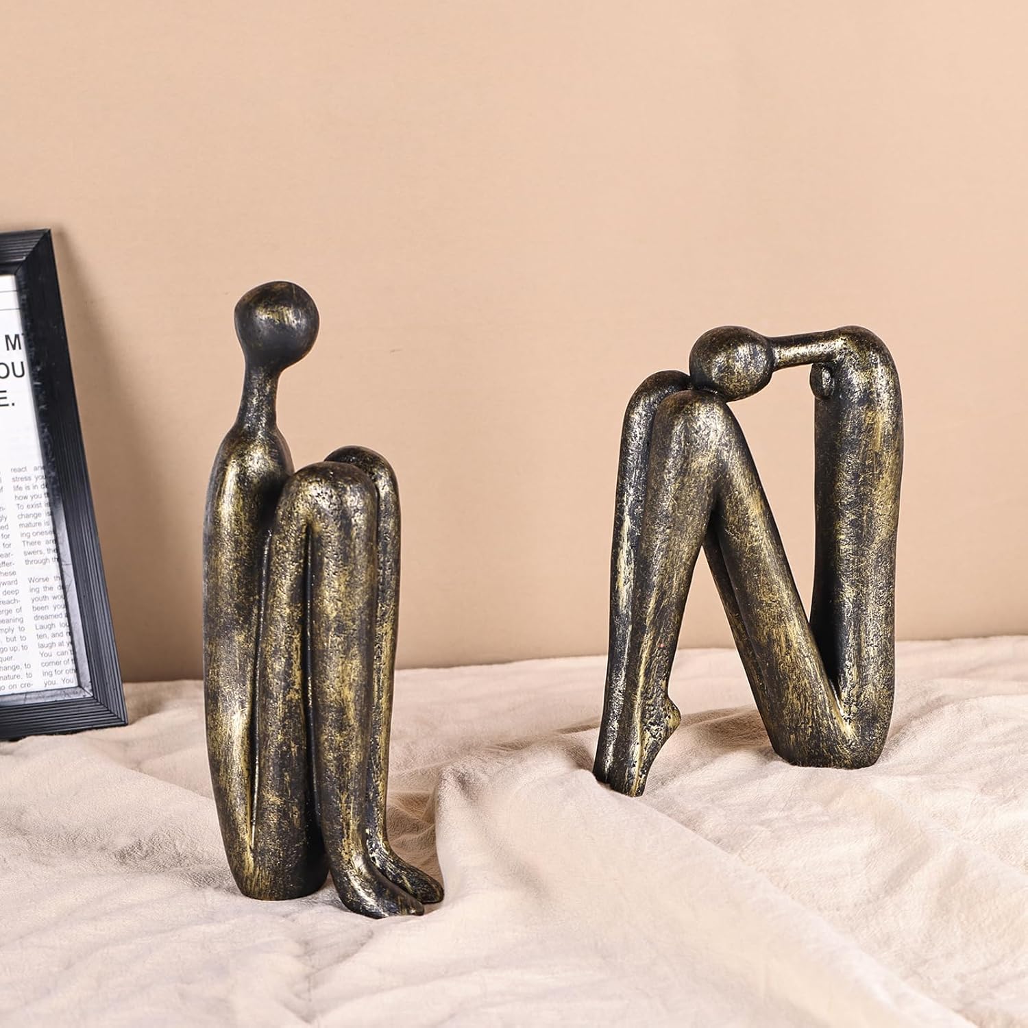Thinker Bookends & Book Ends for Shelves Add both function and artistic charm to your bookshelf with these modern decorative bookends. Designed with an abstract thinker statue silhouette, these creative book ends bring a sophisticated sculptural element to your home or office. Unlike ordinary book stoppers, these heavy bookends are built to support heavy books, textbooks, and magazines while maintaining a stylish appearance. The sturdy structure keeps books upright and organized, making them perfect for bookshelves, desks, offices, libraries, or study rooms. Whether placed on a bookshelf, desk, or office shelf, these decorative bookends act as both a functional organizer and an elegant home decor piece. Perfect for modern interiors, these bookends blend effortlessly with contemporary, minimalist, or artistic home decoration styles.