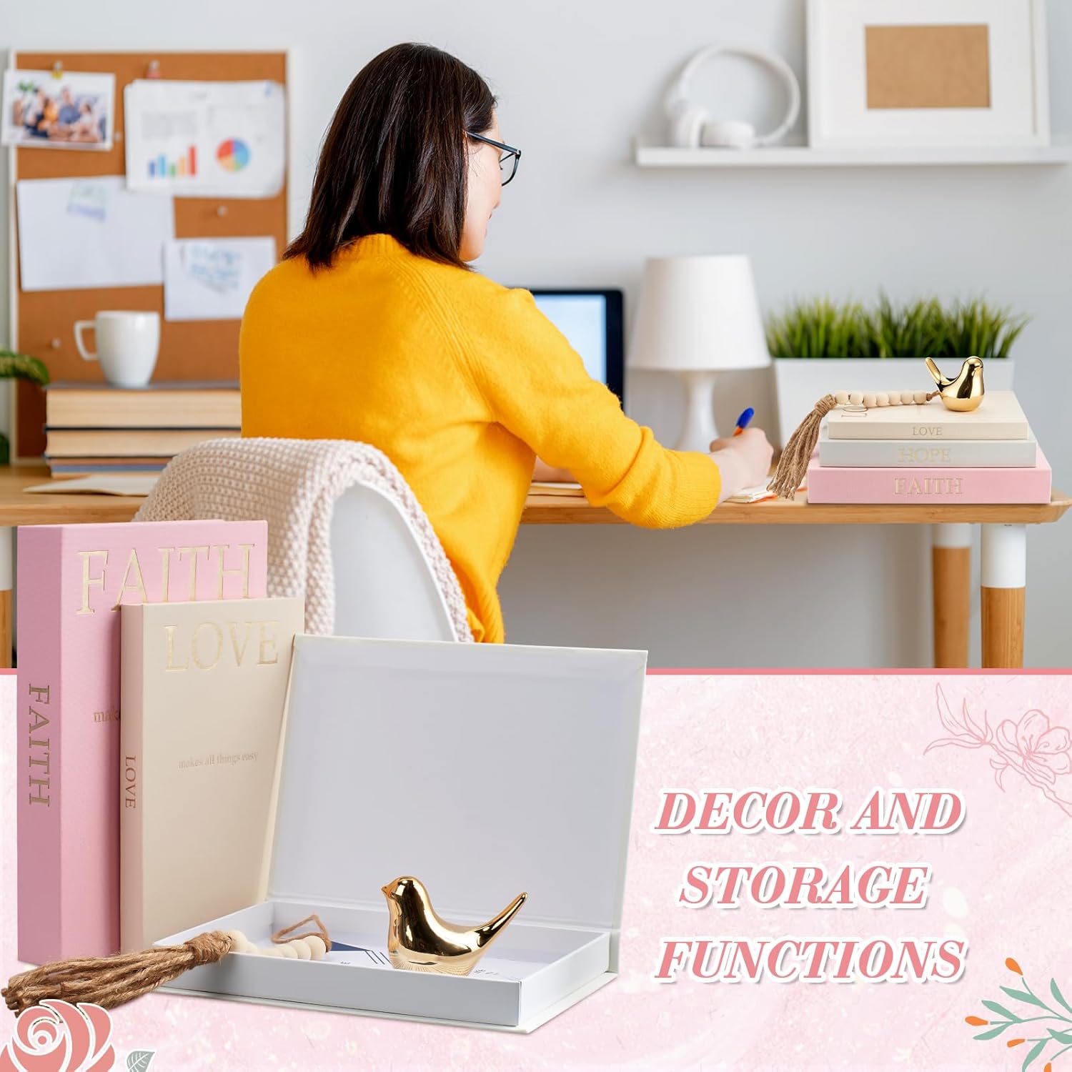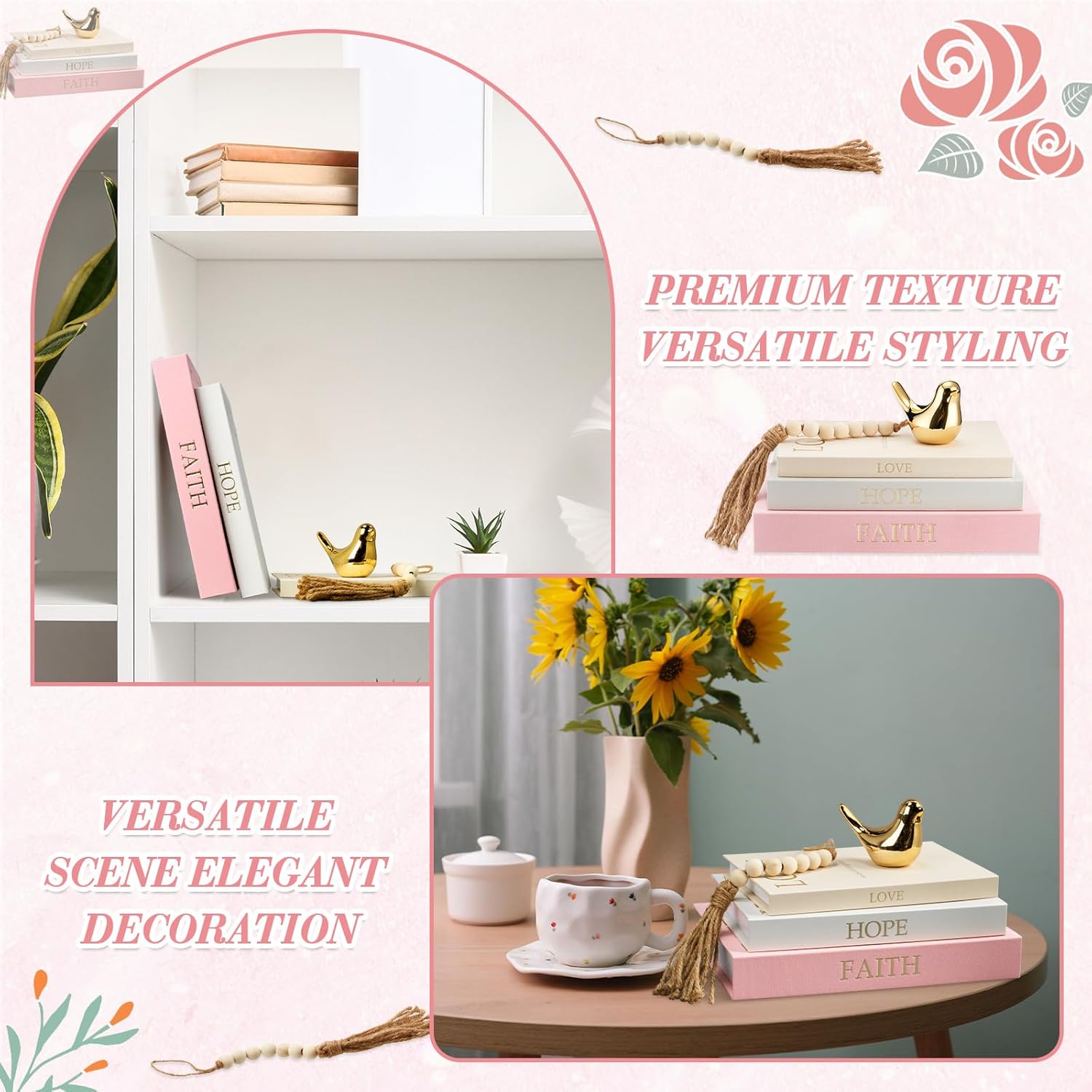 Features: As a gift: These fashion-inspired decorative stacked books are an ideal choice for fashion enthusiasts, book lovers, or anyone who appreciates the fusion of art and style. They make truly exquisite gifts suitable for housewarming, birthdays, Father's Day, Mother's Day, Christmas, and even graduation! The exquisite design is sure to leave a lasting impression. Gifts with Personality: Elevate your space with our books set. These chic, decorative faux books with a wooden bead tassel are perfect accents, lending sophistication to any room. They make nice housewarming or birthday gifts. Good for coffee table or bookshelf decor Specifications: Color: as picture shown Size: Books: about 7.87x11x1.57 inches, 7.09x9.84x1.18 inches, and 6.3x9.06x0.78 Beaded tassel: about 11 inch Gold bird: about 3.6x2.5x1.7 inches Package includes: 3 x Books 1 x Gold bird 1 x Beaded tassel Notes: Manual measurement, please allow slight errors on size. The color may exist a slight difference due to different screen displays.