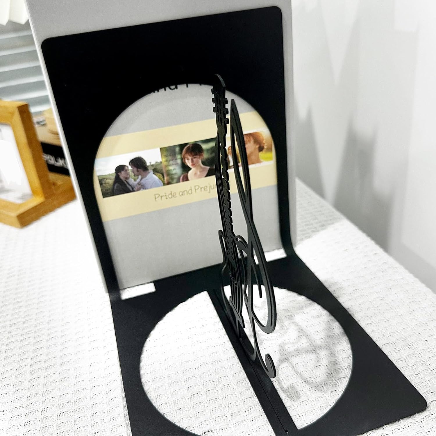 Music Note Metal Bookends, Music Bookends, Metal Music Themed Book Ends, Guitar Bookends, Book Holders for Shelves, Desktop Organizer, Musical Bookshelf Home Decor Quality is at the heart of our bookends: The use of high-quality metal means that they are built to withstand the test of time. The metal is thick and sturdy, ensuring that they can support a large number of books without bending or breaking. The surface finish is smooth to the touch, with a protective coating that guards against scratches and fading. This not only keeps the bookends music looking new but also makes them easy to clean. A simple wipe with a soft cloth is all it takes to maintain their luster. Functional Book Organizer: Beyond their stunning appearance, this musical bookends set serve a practical purpose. They are designed to neatly organize your books on a desk, bookshelf, or any flat surface. The sturdy base and the shape of the music note & guitar provide excellent support, preventing books from toppling over. Keep your reading materials in order while adding a touch of fantasy to your workspace. Material:2mm steel - Quality Lightweight 14 Gauge Steel. Color:Black Music Bookends Dimensions:13.8" x 5.9" x 0.07" Notes: 1. The color may exist slight differences due to different screen displays. 2. Please allow a 1-3% size difference according, due to the manual measurement, Please make sure you do not mind before you bid.