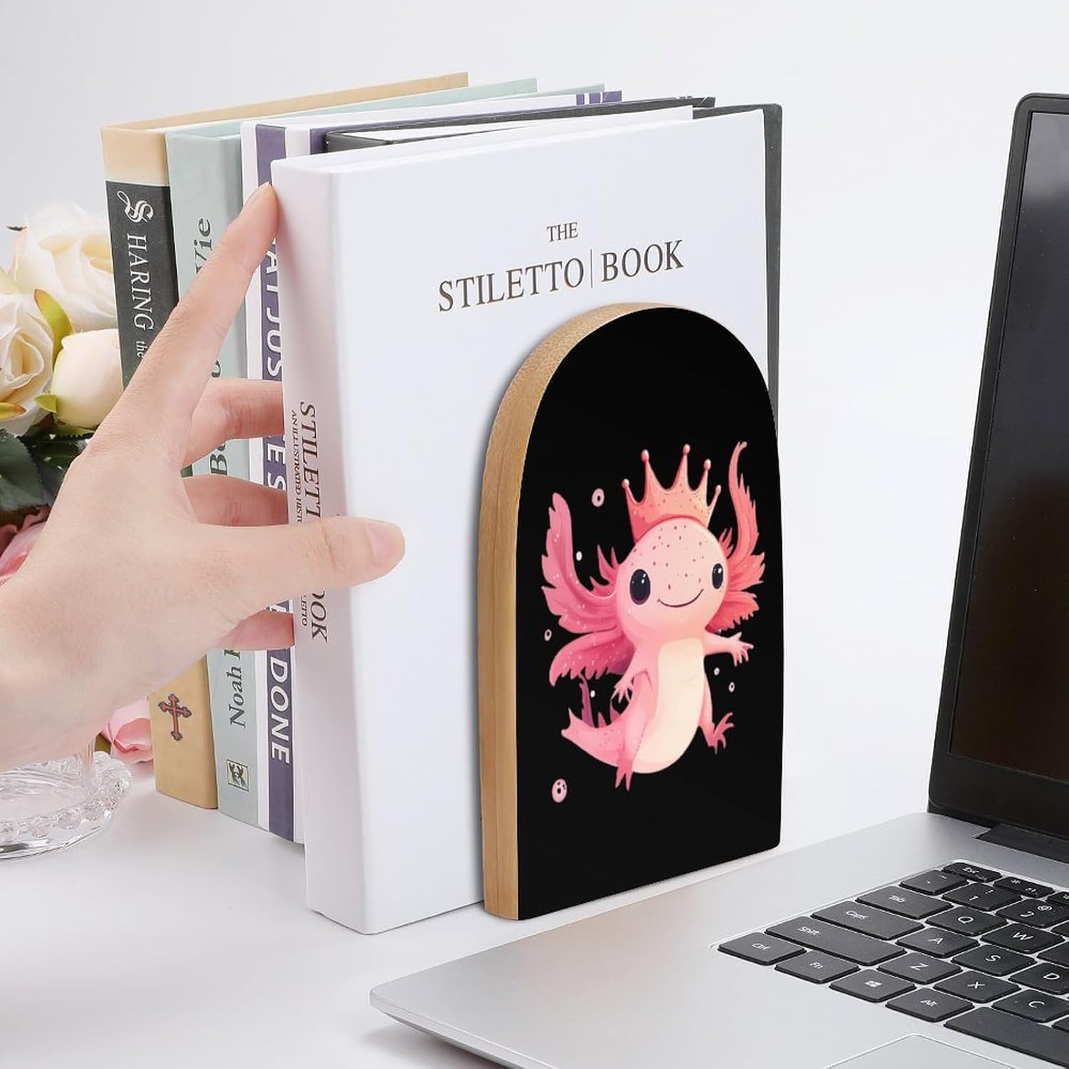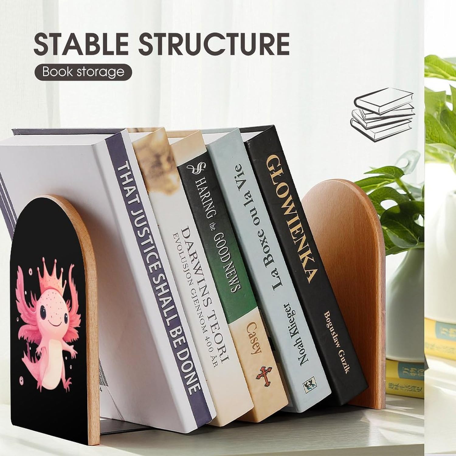 Custom Bookend Wood Book Ends for Shelves Cute Book Shelf Holder Home Decorative,the book end protect your bookshelf or furniture from scratching when you move the bookends