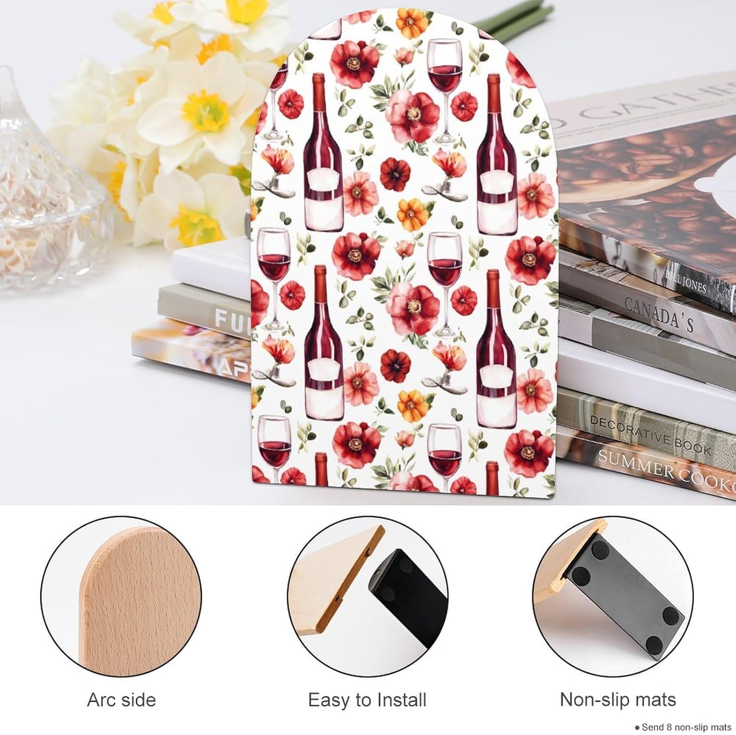 Custom Bookend Wood Book Ends for Shelves Cute Book Shelf Holder Home Decorative,the book end protect your bookshelf or furniture from scratching when you move the bookends