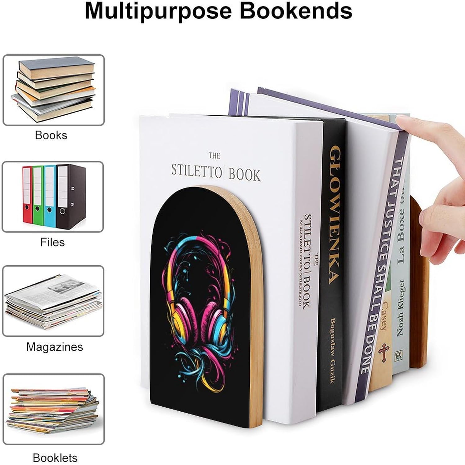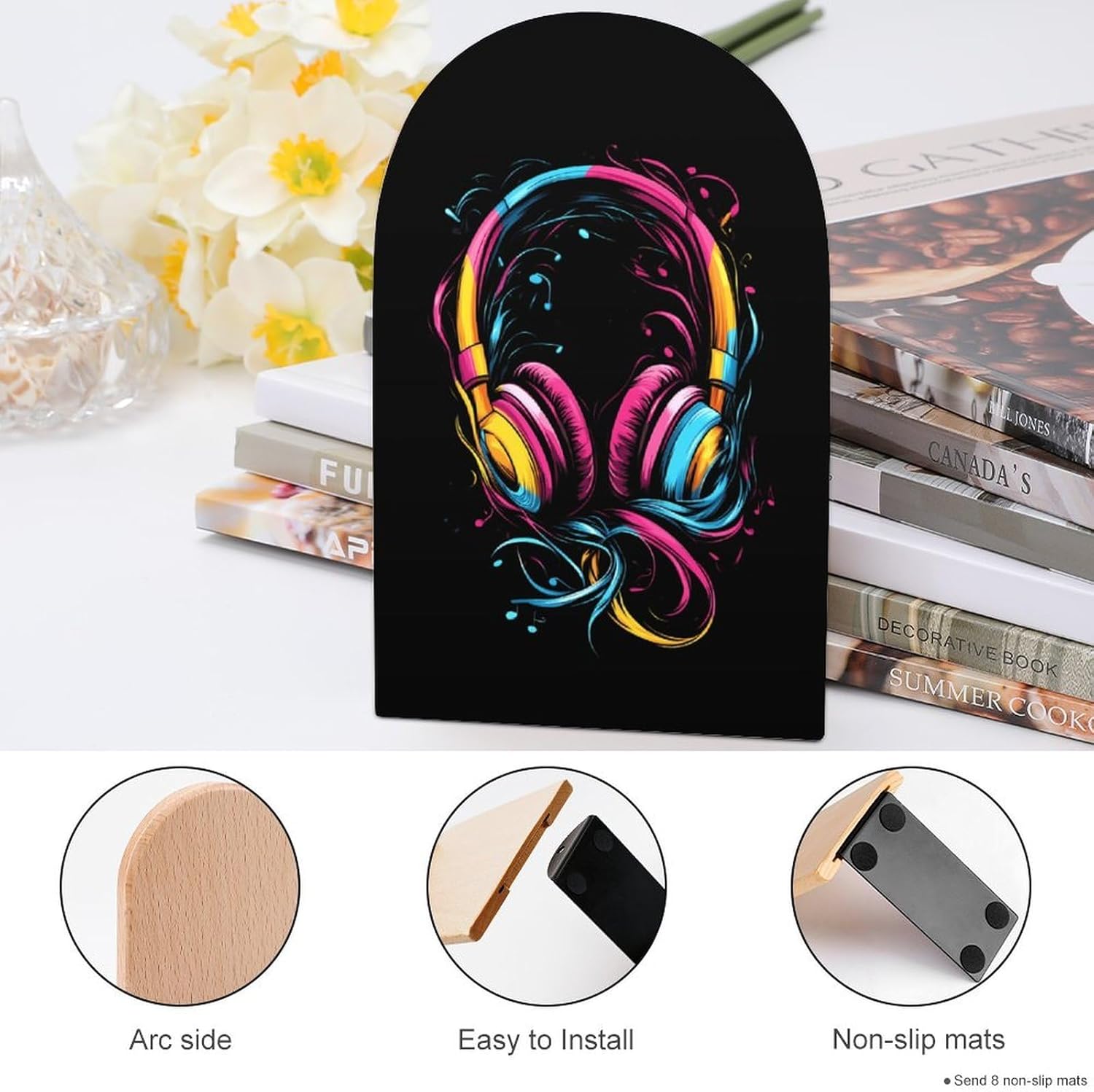 Custom Bookend Wood Book Ends for Shelves Cute Book Shelf Holder Home Decorative,the book end protect your bookshelf or furniture from scratching when you move the bookends