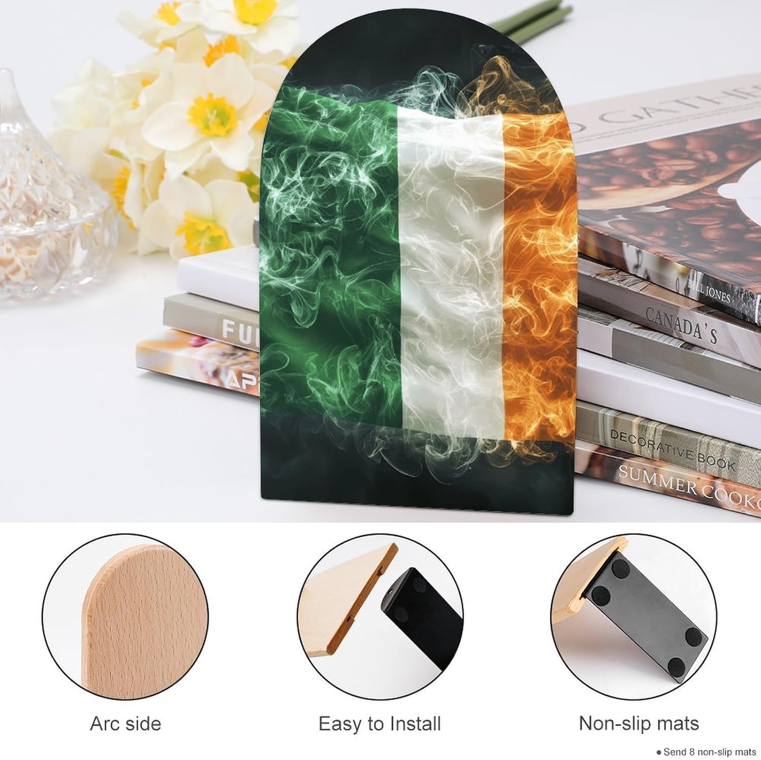 Custom Bookend Wood Book Ends for Shelves Cute Book Shelf Holder Home Decorative,the book end protect your bookshelf or furniture from scratching when you move the bookends