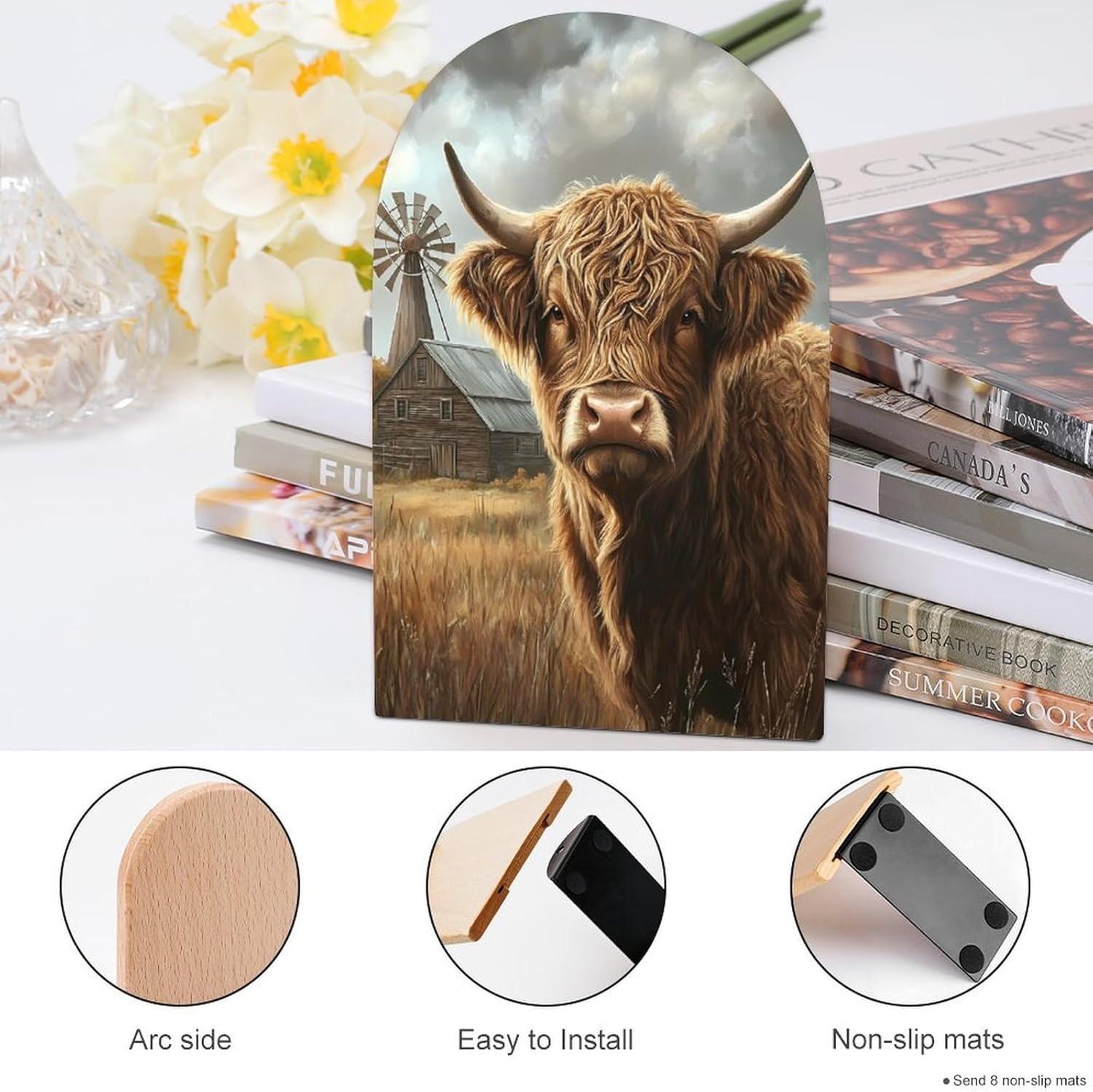 Custom Bookend Wood Book Ends for Shelves Cute Book Shelf Holder Home Decorative,the book end protect your bookshelf or furniture from scratching when you move the bookends
