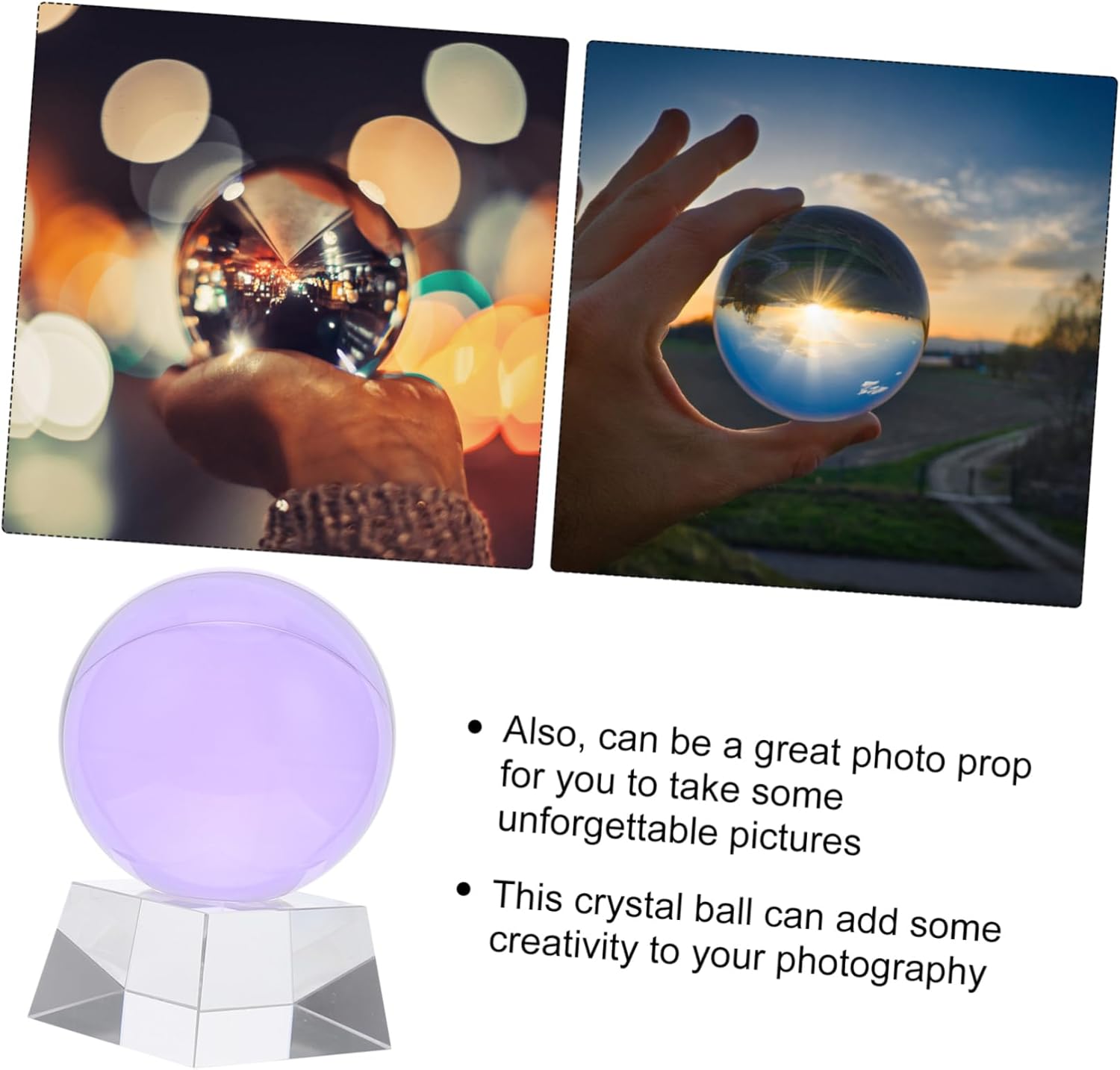 Package Include 1 x crystal ball 1 x 1 x present box Characteristics - Material: Crystal Creative Crystal Art Crafts. - Size: 11.00X8.00X8.00cm/4.32X3.14X3.14inch 3D Crystal Ball. - Color: Purple Crystal Decoration. - It is a choice for your classmates, family, friend and colleagues Crystal Ball with Stand. - This creative crystal ball decor could change the old style of your home, which can bring you a mood Crystal Crafts Desktop Decor. - Features the compact size, without taking up too much space, stylish and delicate Purple Crystal Ball Ornament. - Equipped with a base, easy to display. Suitable for display in the living room, bedroom, car, office desk, tabletop, bringing your home a DIY Decorative Accessory. - It can be used for wedding, family, office decoration, adding a touch of elegance to the room Birthday present.Goods InformationFestival present It can be placed shop, office, home or other places.Birthday present wanna a fashionable and beautiful crystal ball decoration? If you want, you can , this is an elegant and stylish crystal ball adornment.Purple Crystal Ball Funny design make it a great birthday friends