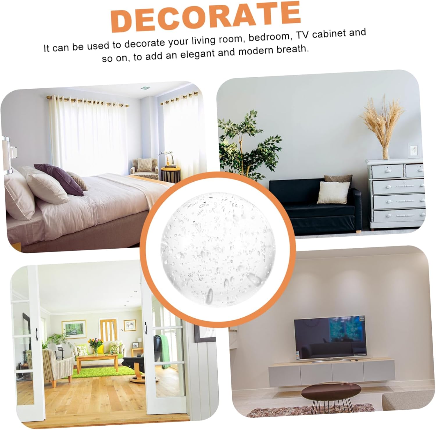 Package Include 1 x glass ball Characteristics -Material:Glass Glass Ball Art Crafts -Size:10.00X10.00X10.00cm/3.93X3.93X3.93in Glass Ball -Color:Transparent Decorative Bubble Glass Balls - Gorgeous glass ball design adds more vivid art breath to your house as well as other living space for decoration. Desktop Glass Ball Decors - The glass sphere ornament can also be placed on your table, window or anywhere as you like Living Room Glass Ball Decors. - Made from excellent and sturdy materials, it is and for you to use Home Decors. - With great workmanship, it can be indoor decorations for home, office, shops and others Glass Ball Ornaments. - of applications, it can be used as art craft, desk ornament, home decoration and more Glass Ball Props.Goods DescriptionGlass Spheres An decoration will give you a different feeling and a happy mood.Glass Ball Art Crafts The chic appearance design also can match your home decoration .Office Balls Adopting and material, it can be a friends or family