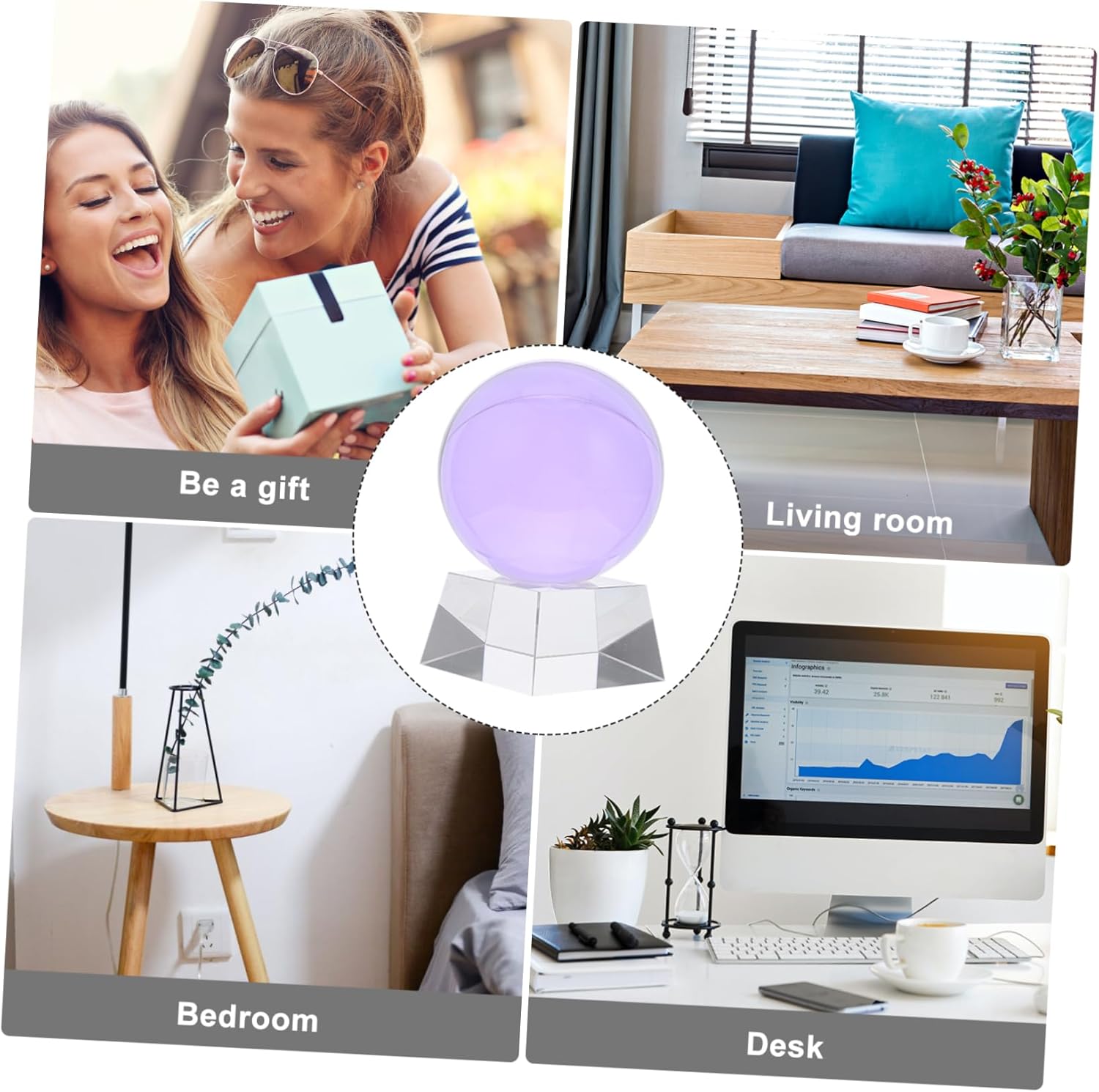 Package List 1 x crystal ball 1 x 1 Features - Color: Purple DIY Decorative Accessory. - Size: 11.00X8.00X8.00cm/4.32X3.14X3.14inch Crystal Ball Ornament. - Material: Crystal Purple Crystal Ball Ornament. - With a clear stand, it can stand steadily on a desktop, which has a good decorative effect Festival . - Can be used to decorate your office desk, porch, study room and some other places Crystal Sphere Adornment. - This crystal ball adopts of sturdy and material, sturdy and long serving time Purple Crystal Ball. - With excellent craftsmanship, stylish appearance, perfect as a decoration or store Creative Crystal Art Crafts. - A wonderful choice for your close friends or dear families, stylish and Crystal Crafts Desktop Decor.Goods InformationBirthday It can decorate your place specially.Festival This is a creatively designed crystal ball ornament for home or office decoration.Creative Crystal Art Crafts Made from , it is very suitable to decorate your home or your office.Crystal Ball with Stand The delicate and three-dimensional look makes people feel happy