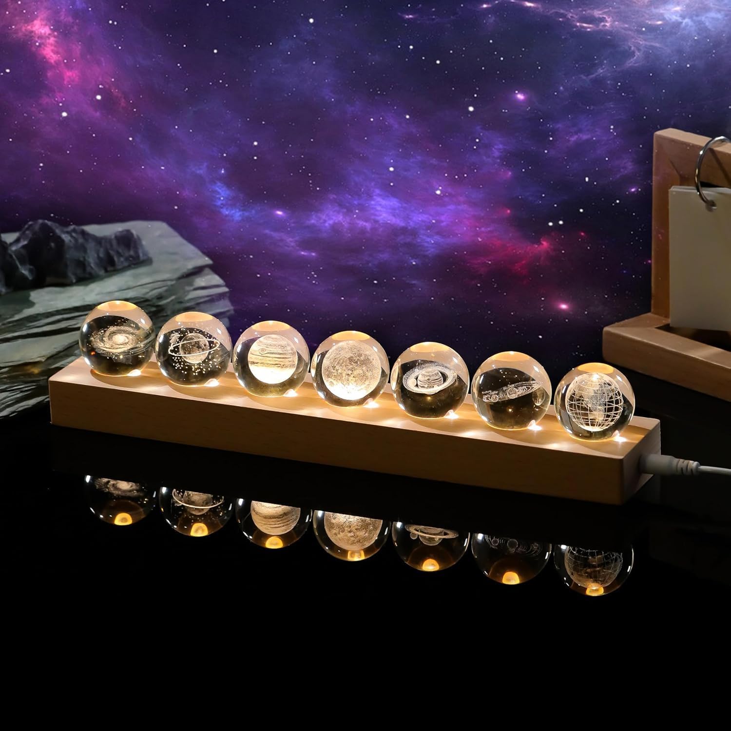 3d Crystal Ball Solar System Crystal Ball with Led Lamp Base - Best Birthday Science Gifts For Man Teacher Boy Kids Girls Men - Galaxy Jupiter Saturn Moon Earth Solar System Space Astronomy Gifts