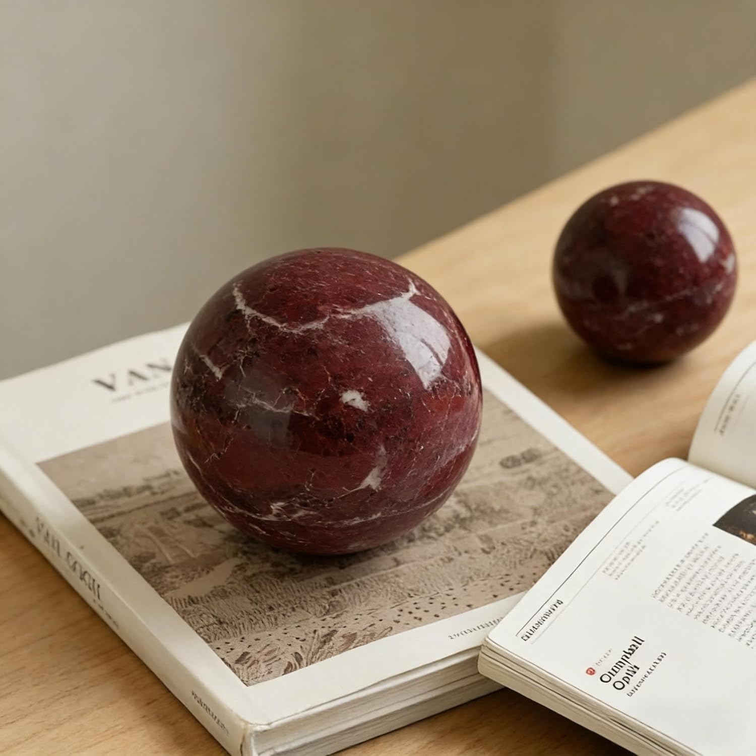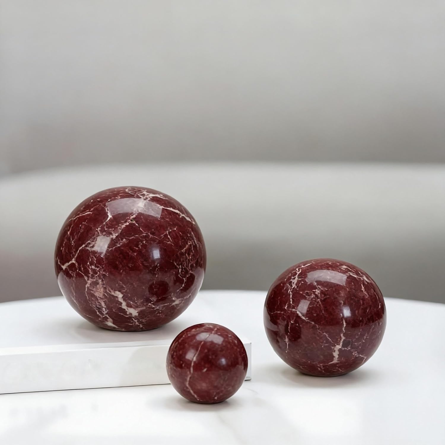 Transform your living space with these exquisite natural marble decorative spheres, masterfully crafted from solid white marble stone. Each sphere features unique, naturally occurring patterns and veining that make it a one-of-a-kind piece of art. Perfect as standalone statement pieces or arranged in groupings, these weighty orbs add sophisticated dimension to any surface. Their versatile design complements both modern and classical décor styles, making them ideal for elevating the ambiance of bedrooms, entryways, hotel lobbies, or dining room tables. The smooth, polished finish highlights the marble's natural beauty while providing an elegant tactile experience. These timeless decorative balls serve as perfect accent pieces that bring a touch of luxury and natural elegance to any interior setting. The substantial weight of these solid marble spheres ensures they remain steadily in place while serving as sophisticated conversation pieces. Whether displayed on a bookshelf, coffee table, or as part of a larger decorative arrangement, these marble spheres add a refined, architectural element to your space.