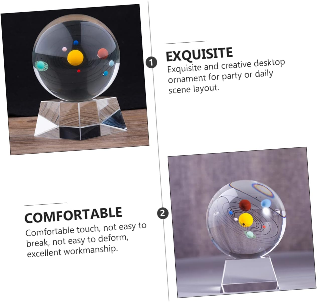 Package Include 1 x Crystal Ball 1 x Base Features -Color: Transparent Home Ornament -Size: 8.00X8.00X7.00cm/3.14X3.14X2.75in Desktop Decor -Material: White Crystal Home Crystal Ball Decor -Features the compact size, without taking up too much space, stylish and delicate Delicate Crystal Ball. -Suitable for display in the living room, bedroom, car, office desk, tabletop Crystal Ball Decor. -It is a choice for your classmates, family, friend and colleagues Crystal Ball Ornament. -Use this creative crystal ball decor to change the old style of your home Solar System Model Decor. -The material is premium, sturdy and not easy to break with look Creative Model.Goods InformationChic present Funny design make it a great birthday friends.Decorative Crystal Ball wanna a fashionable and beautiful crystal ball decoration? If you want, you can , this is an elegant and stylish crystal ball adornment.Delicate Crystal Ball It can be placed shop, office, home or other places