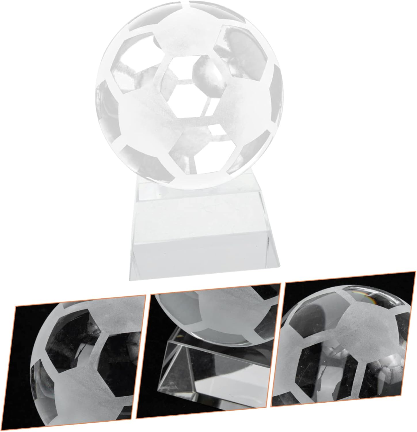 Package Include 1 x Crystal Soccer Ball 1 x Trapezoidal Stand Features - Size: 11.00X8.00X8.00cm/4.32X3.14X3.14in Soccer Ball - Material: Crystal Football. - Note: soccer ball diameter is 8cm Transparent Crystal Football. - The shape design is lovely, unique and creative, which will greatly attract attention Crystal Football Ornament. - Multi-functional and practical, for decoration, photo prop, souvenir , excellent decorative effect Crystal Soccer Ball with Stand. - The crystal soccer ball can be used for theme parties, football events, birthday parties, celebrations and more Clear Crystal Soccer Ball. - High-end material, flexibility and excellent durability, easy to use, for Crystal Soccer Ball for Decoration. - Funny and charming, can help to increase fun and joy for your sport-themed party Crystal Soccer Ball.Goods DescriptionCrystal Soccer Ball Made of excellent craftsmanship and crystal materials, it has excellent decoration and practicality.Transparent Crystal Soccer Ball Are you looking for creative and interesting crystal soccer ball? Do you want to make your theme party more special and warm? This clear crystal soccer ball with stand will be your choice